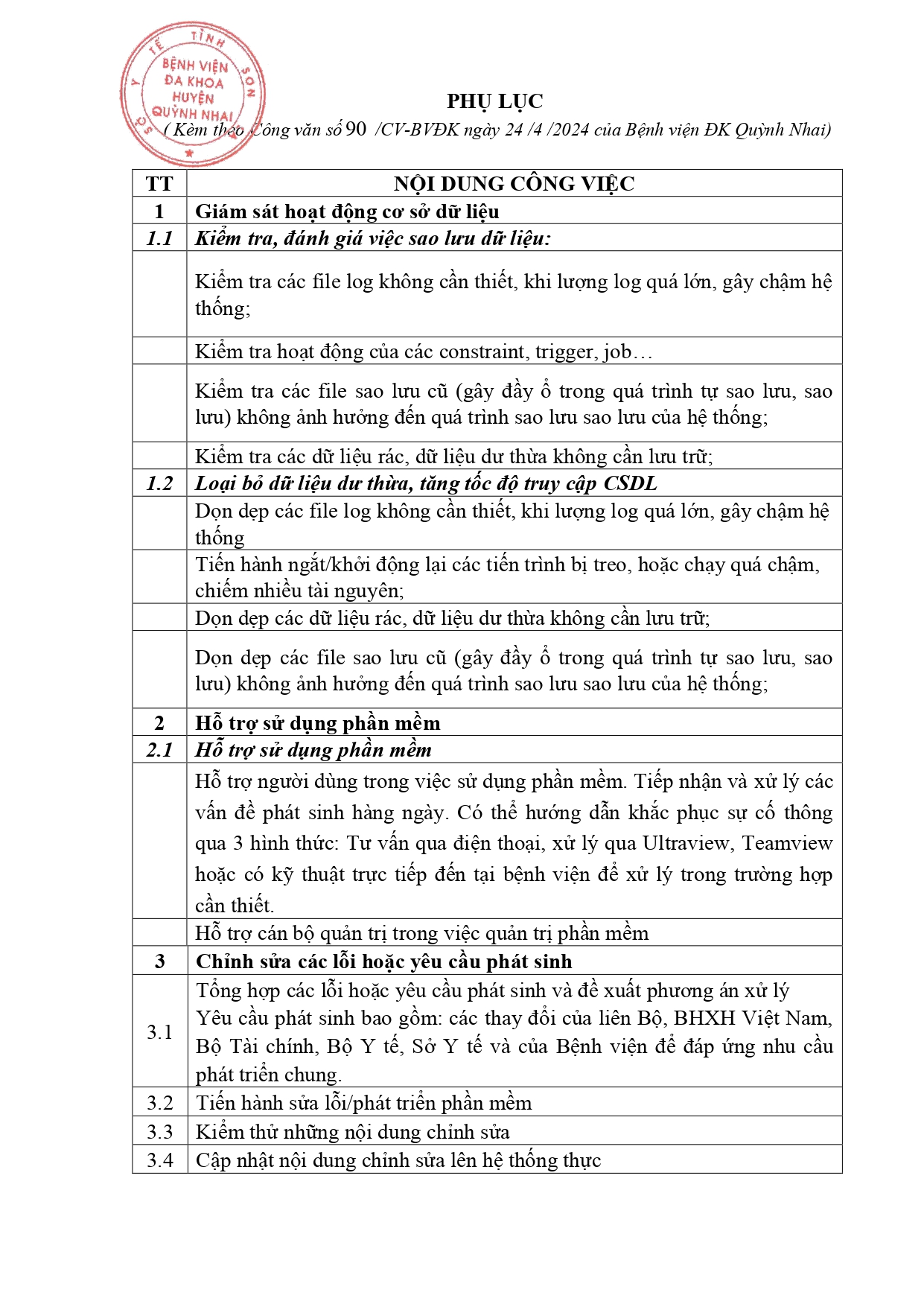 Báo giá chi phí bảo trì hệ thống phần mềm quản lý bệnh viện đa khoa huyện Quỳnh Nhai