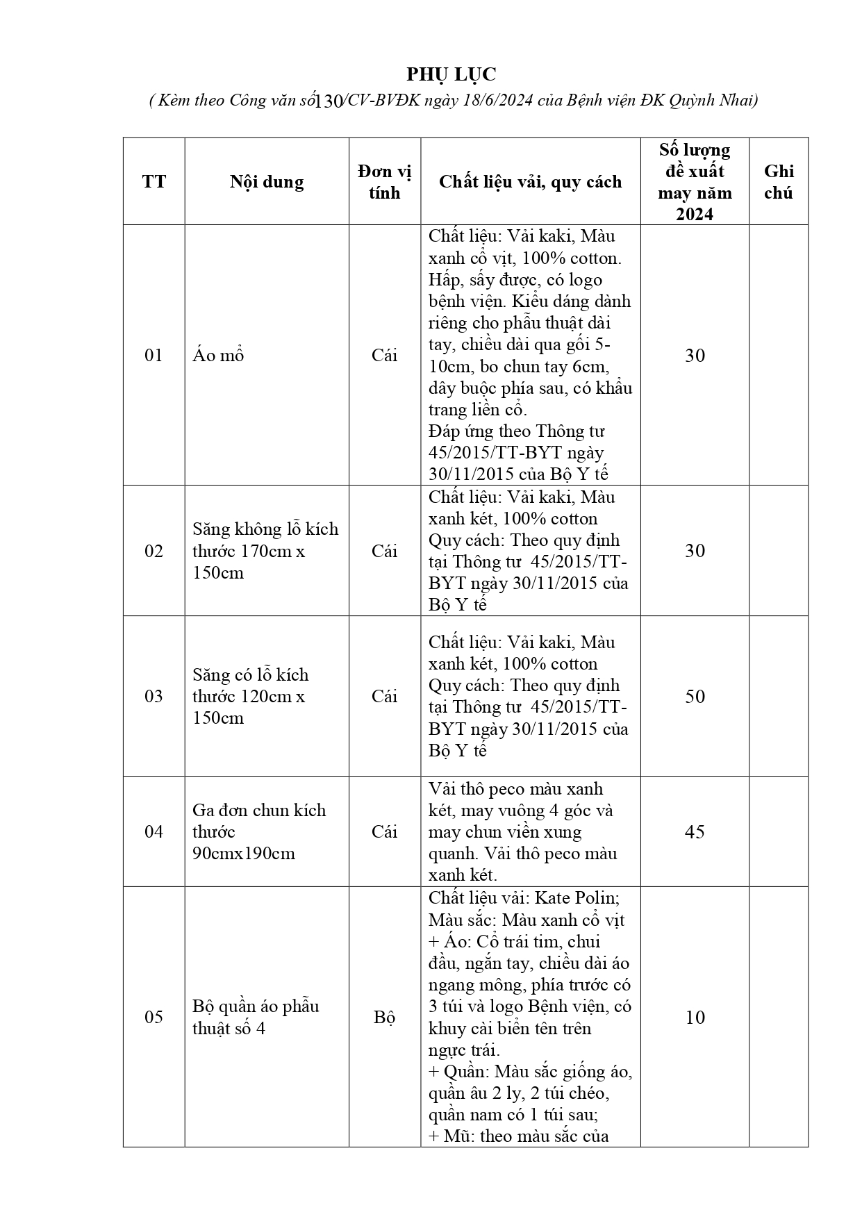 Báo Giá đồ vải bênh viện đa khoa huyện quỳnh nhai
