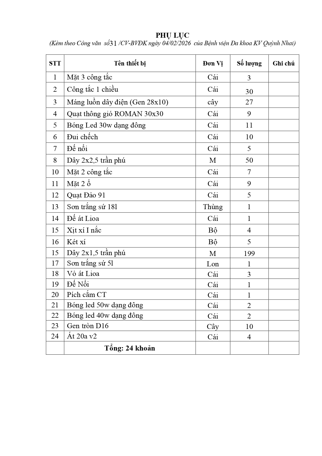 Báo giá hàng hóa của Bệnh viện Đa khoa khu vực Quỳnh Nhai