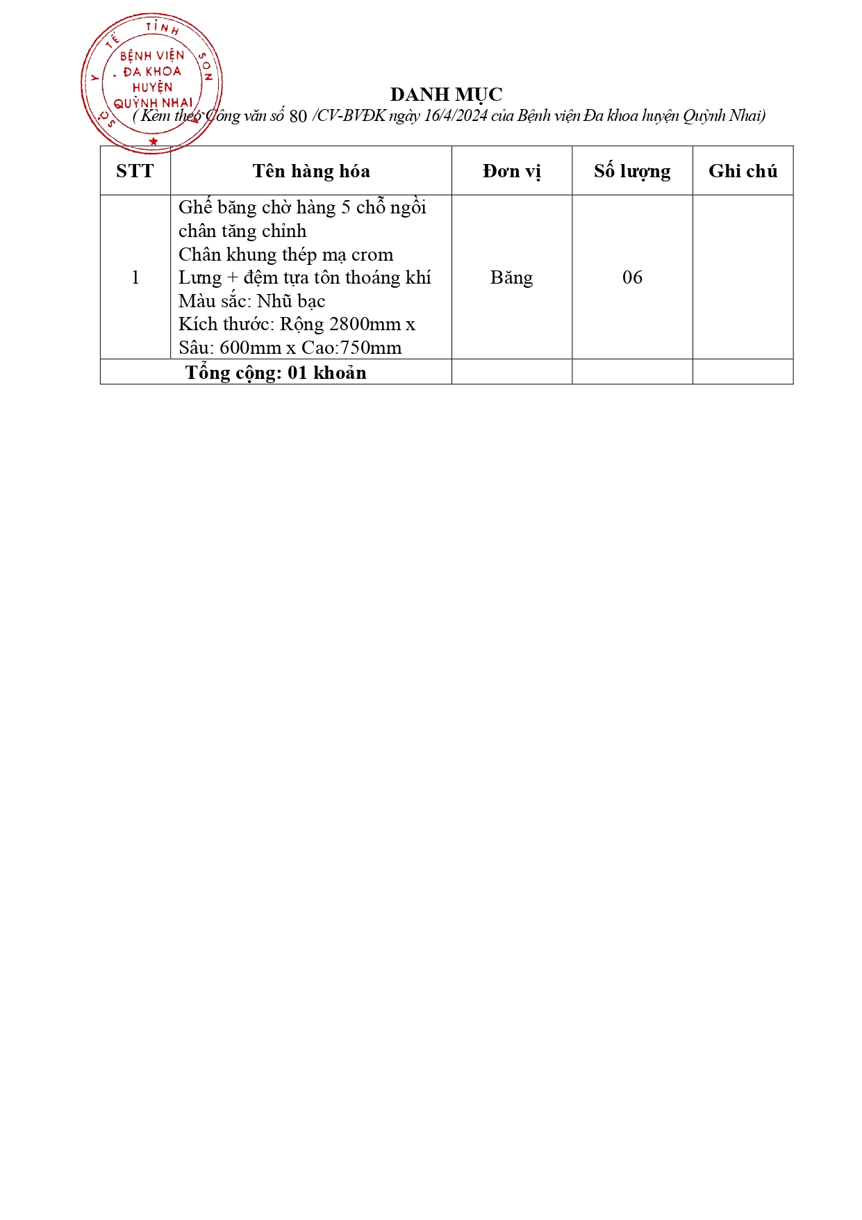 Báo giá hàng hóa (Ghế băng chờ dùng cho Bệnh nhân)