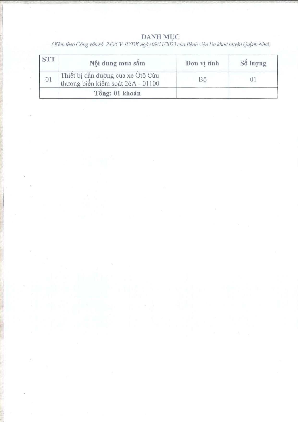 Báo giá hàng hóa (Thiết bị dẫn đường của xe oto cứu thương)