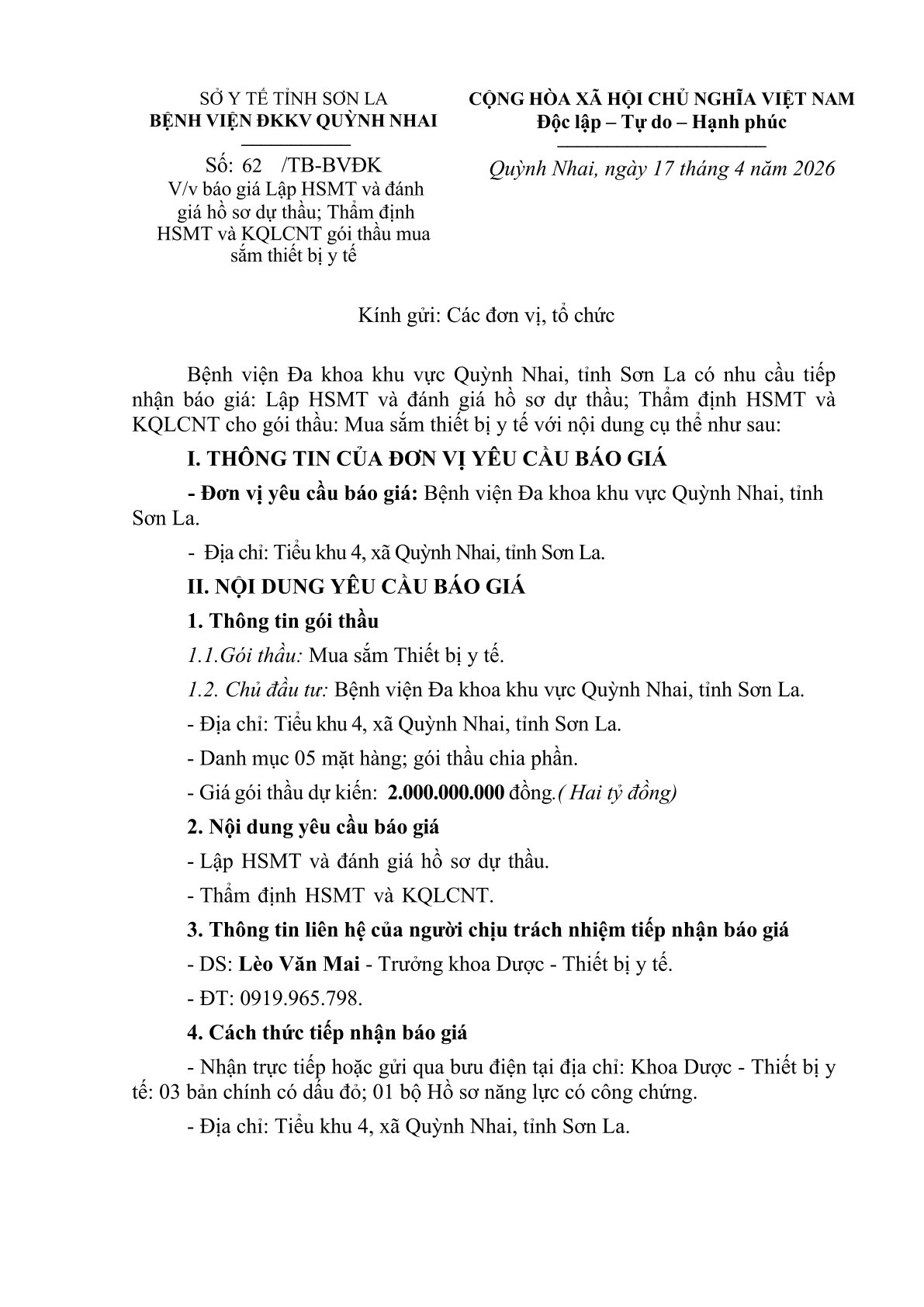Báo giá lập HSMT và đánh giá hồ sơ dự thầu; Thẩm định HSMT và KQLCNT gói thầu mua sắm thiết bị y tế