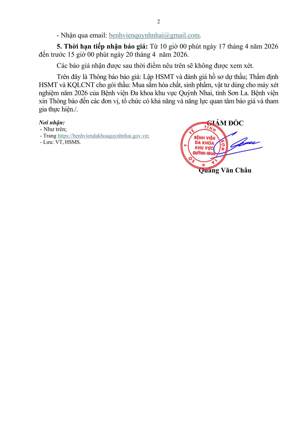 Yêu cầu báo giá vật tư dùng cho máy xét nghiệm và sinh phẩm Invitro
