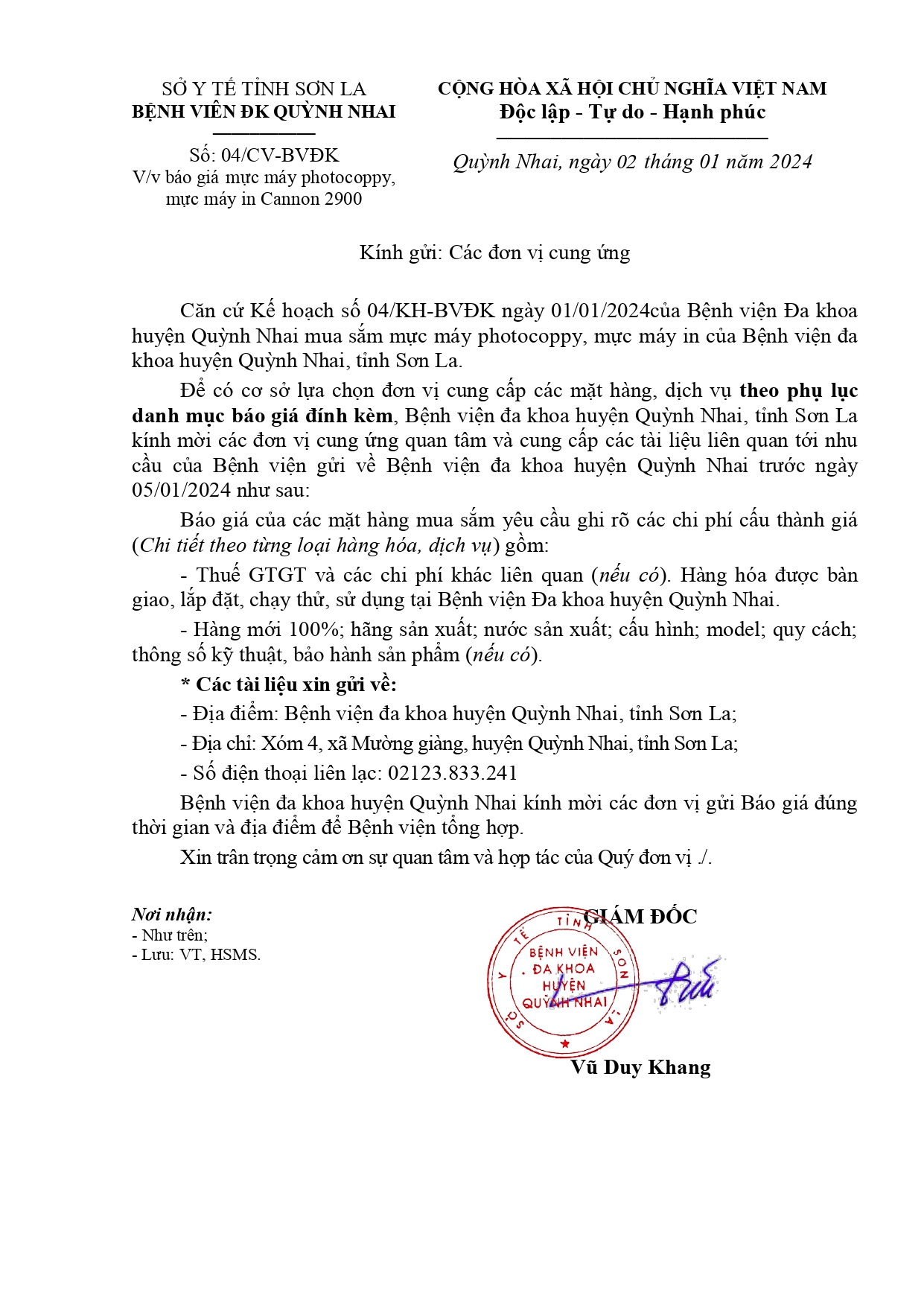 Yêu cầu báo giá vật tư dùng cho máy xét nghiệm và sinh phẩm Invitro