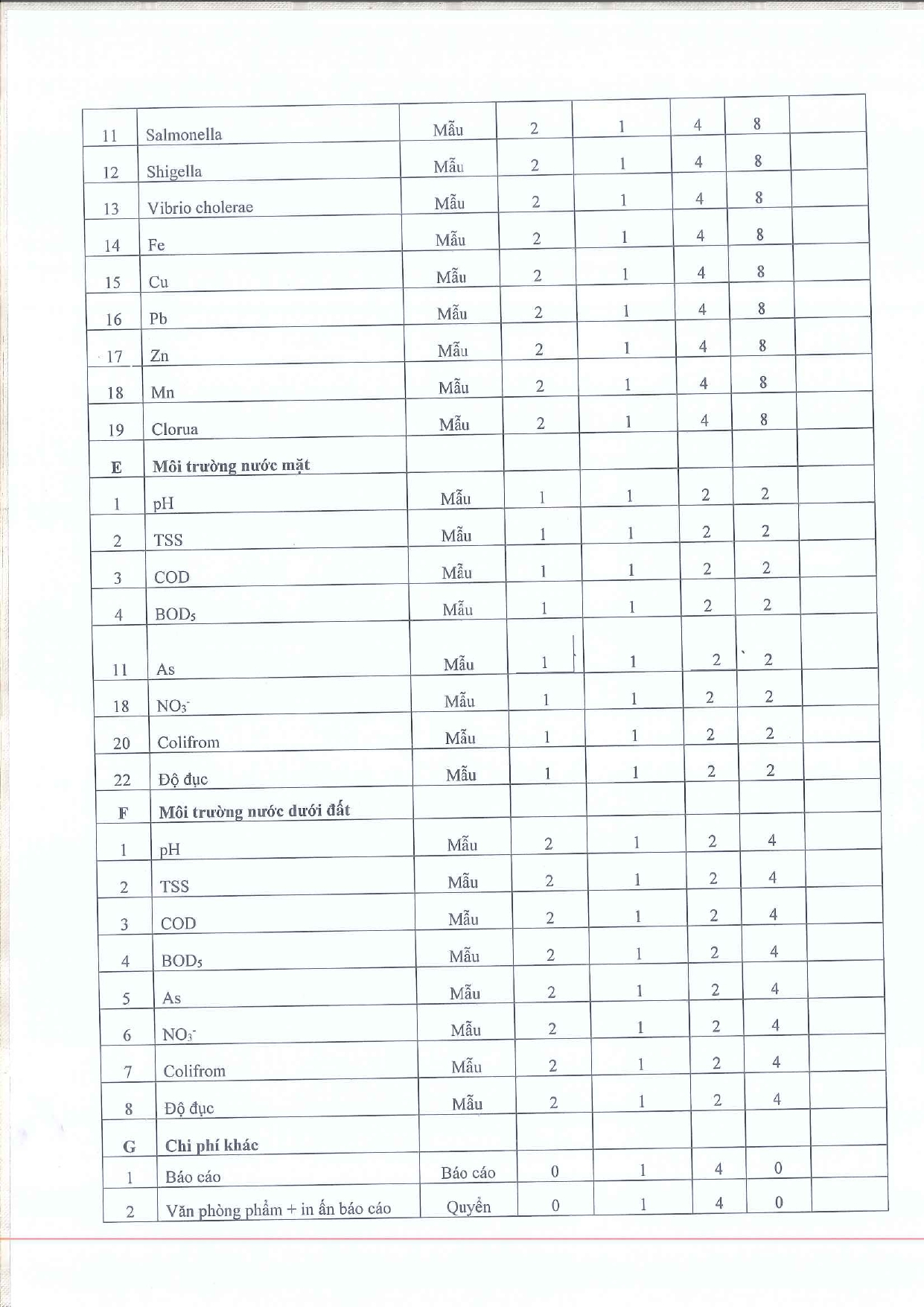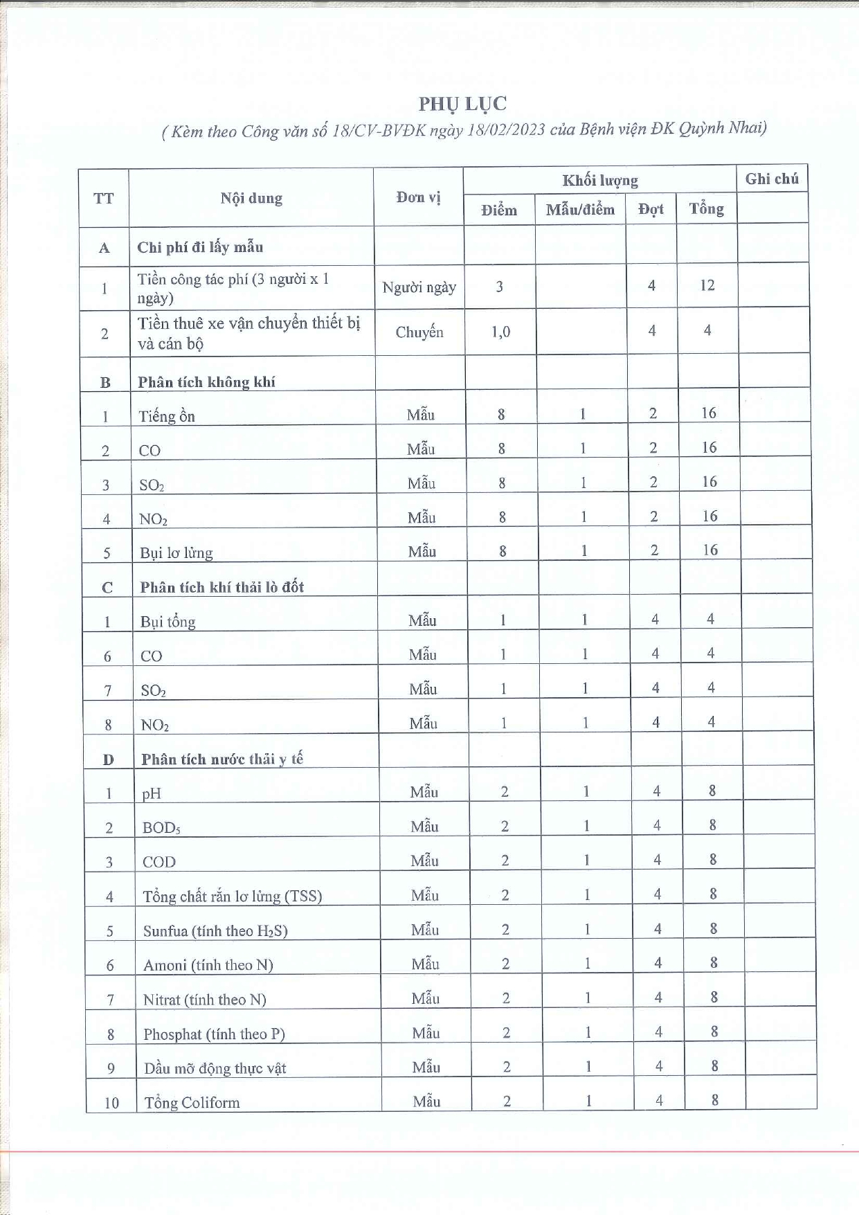 Báo giá quan trắc chất lượng môi trường bênh viên đa khoa Quỳnh nhai