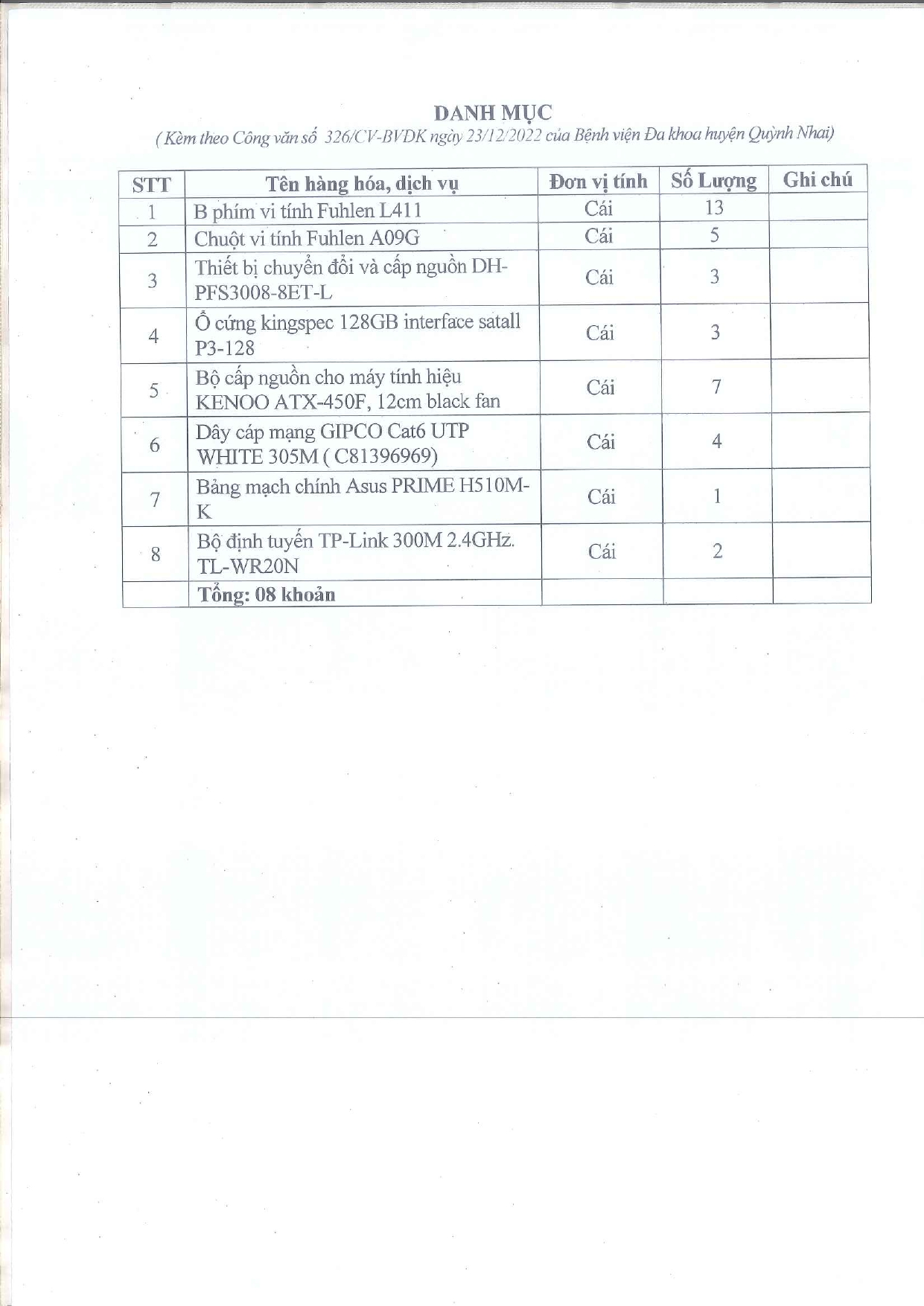 Yêu cầu báo giá vật tư dùng cho máy xét nghiệm và sinh phẩm Invitro