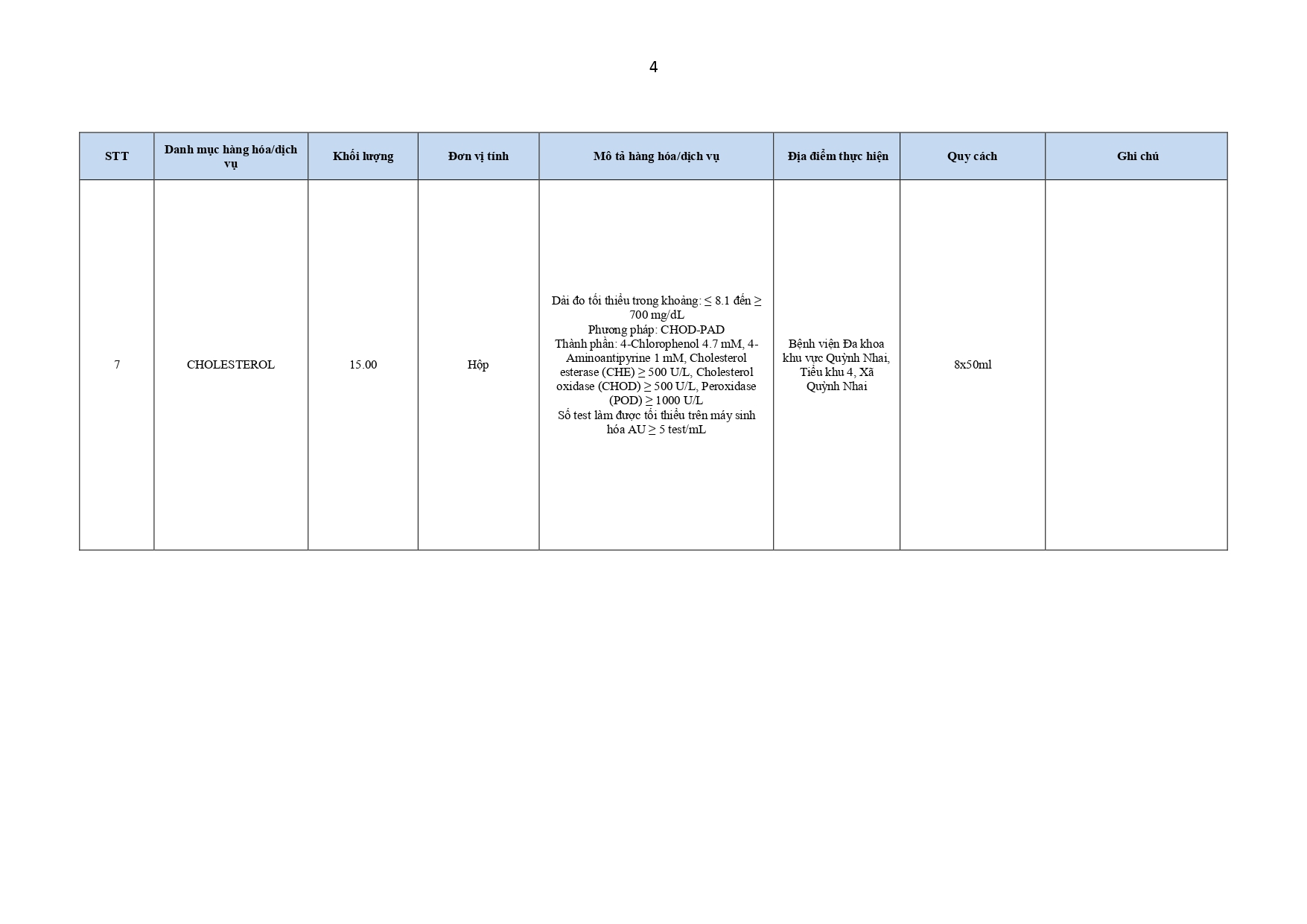 Công văn báo giá hóa chất, sinh phẩm, vật tư dùng cho máy xét nghiệm