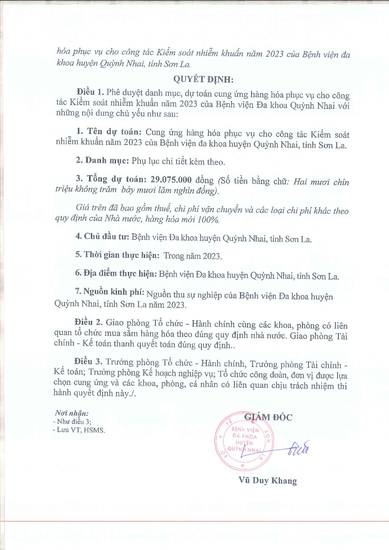 Phê duyệt danh mục, dụ toán cung ứng hàng hóa phục vụ cho công tác kiểm soát nhiêm khuẩn