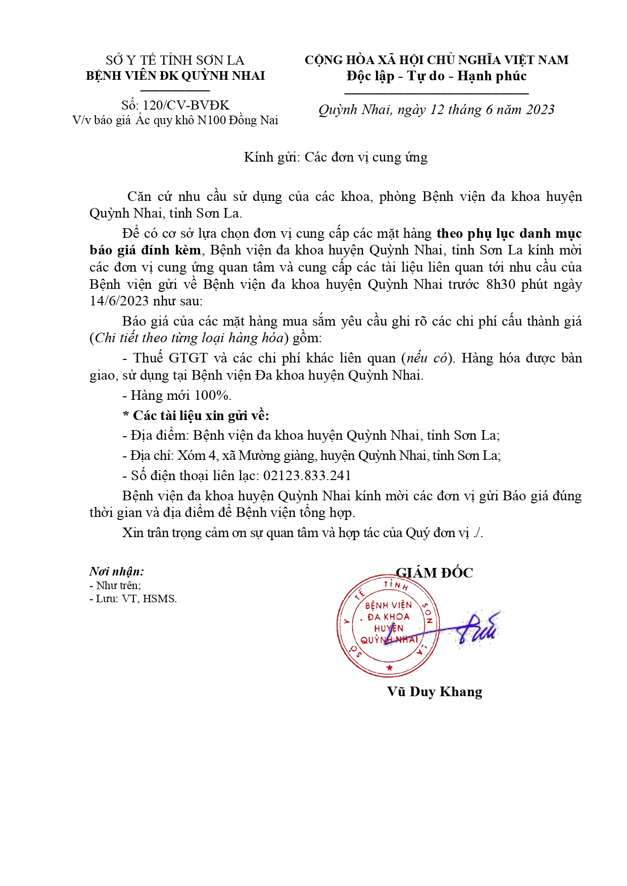 Yêu cầu báo giá vật tư dùng cho máy xét nghiệm và sinh phẩm Invitro