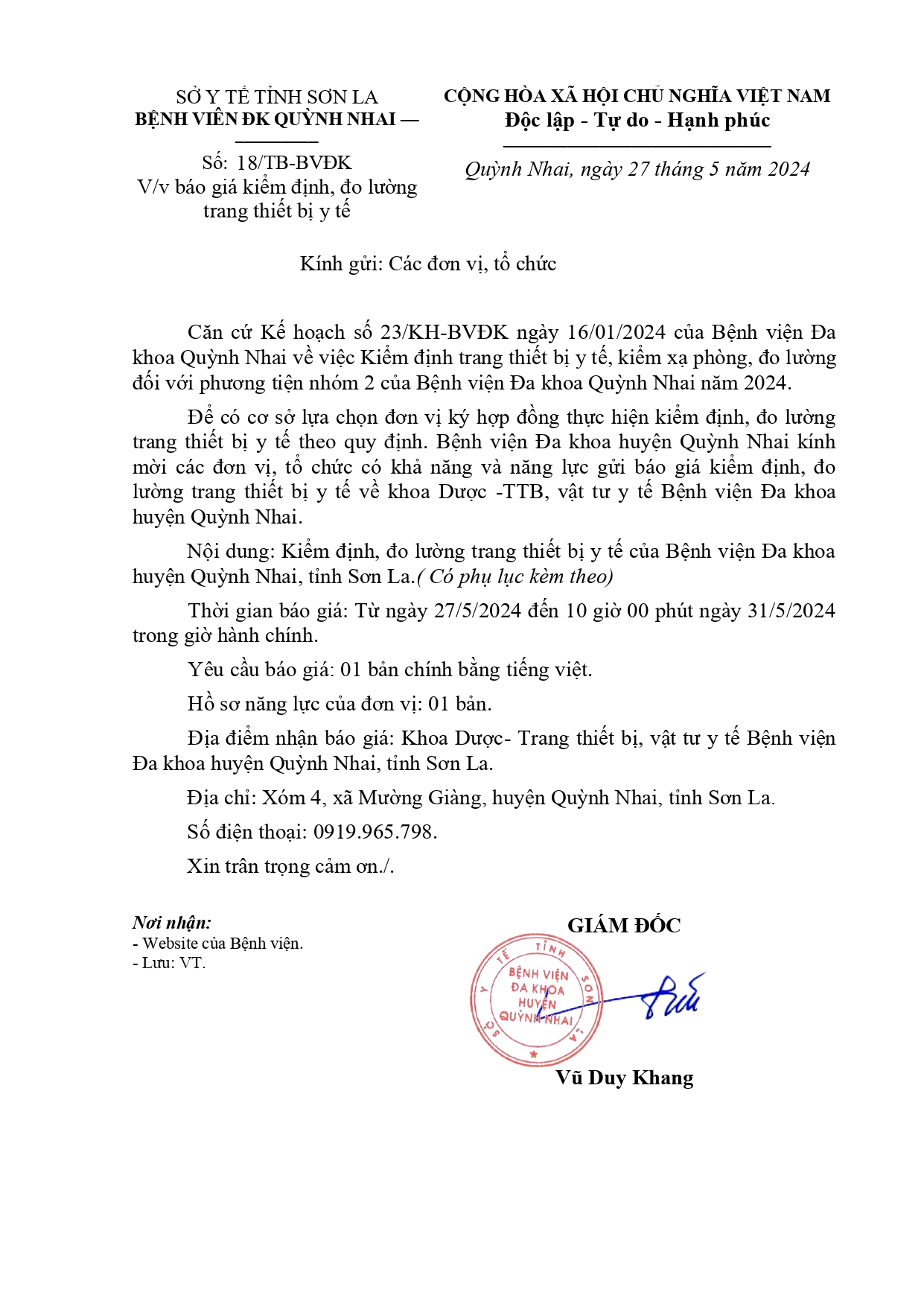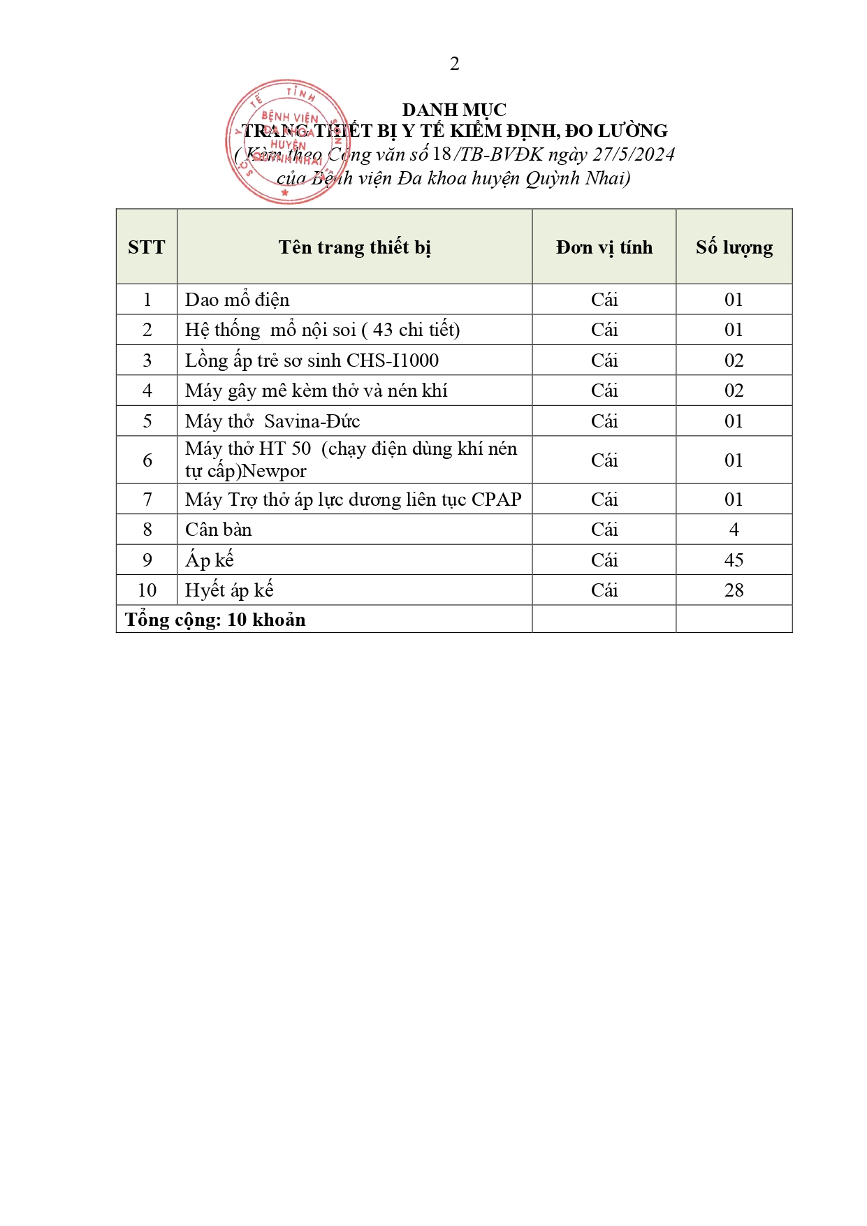 yêu cầu báo giá Kiểm định, kiểm tra an toàn tính năng kỹ thuật thiết bị y tế, kiểm xạ phòng, đo lường đối với phương tiện nhóm 2, hiệu chuẩn dụng cụ y tế