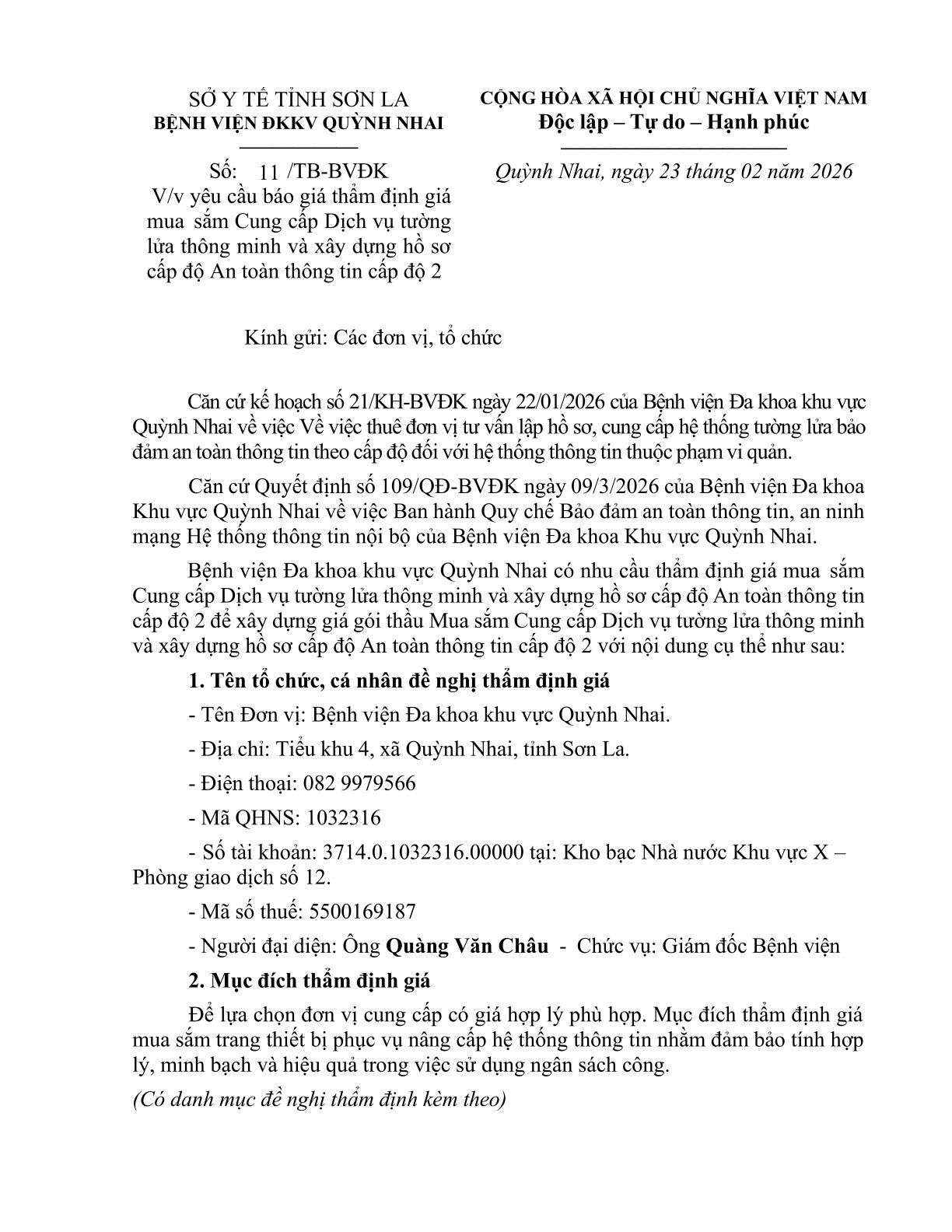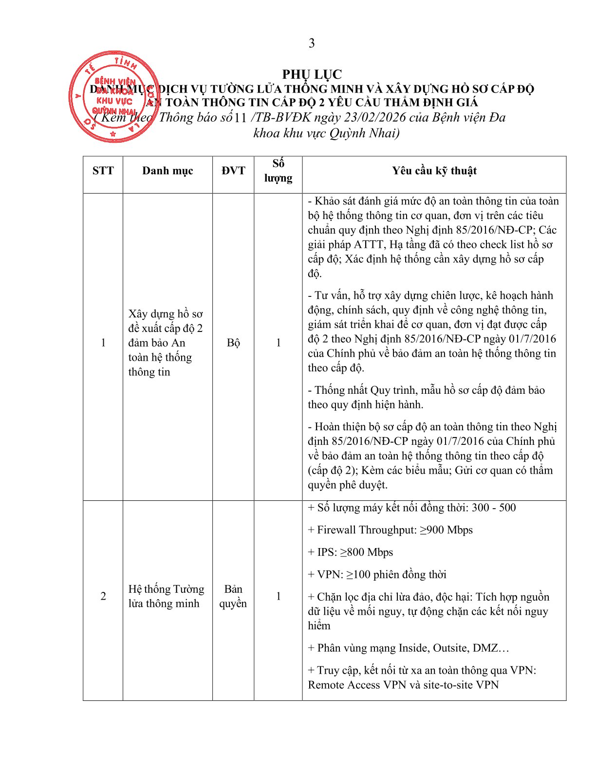 Yêu cầu báo giá thẩm định giá mua sắm Cung cấp Dịch vụ tường lửa thông minh và xây dựng hồ sơ cấp độ An toàn thông tin cấp độ 2