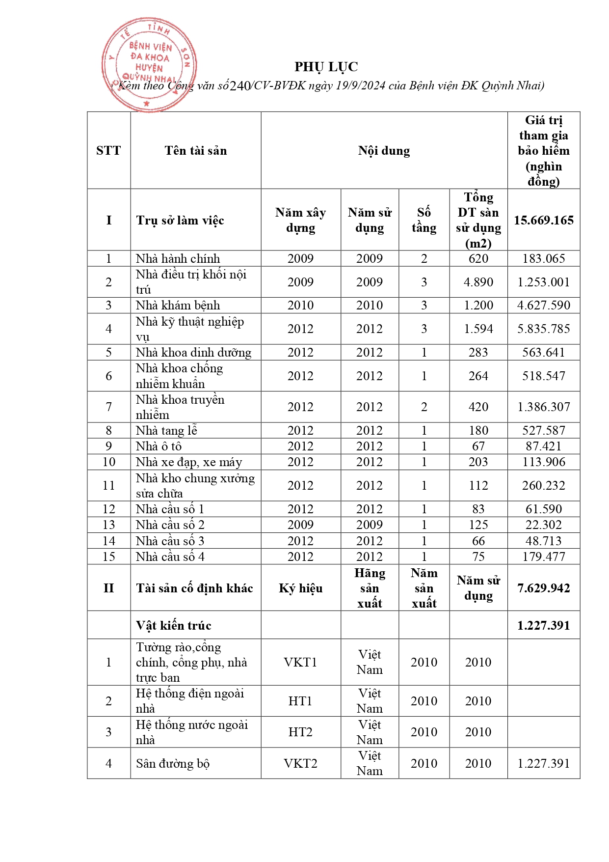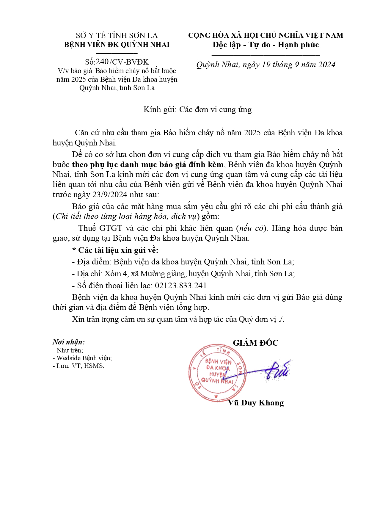 Báo giá bảo hểm cháy nổ bắt buôc năm 2025 của bệnh viên đa khoa uyên quỳnh nhai