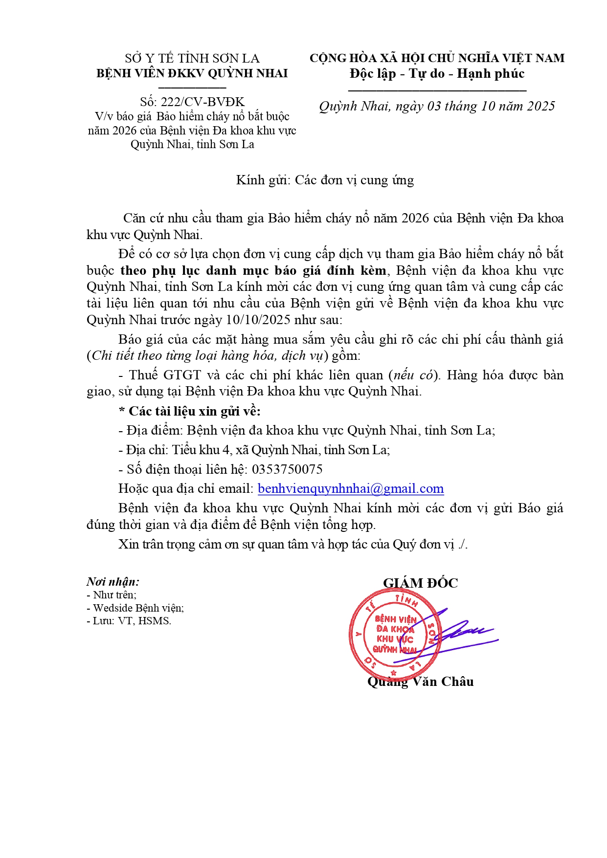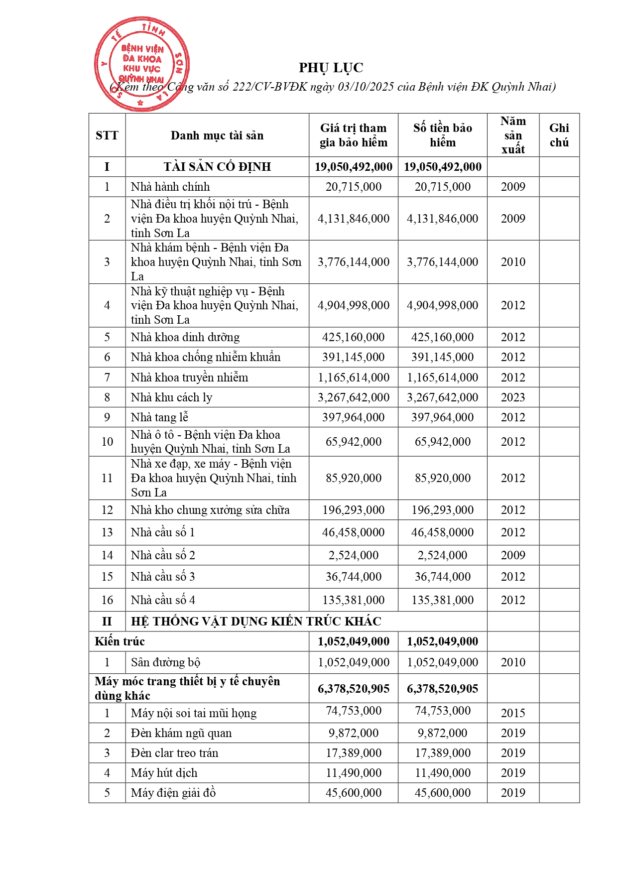 Báo giá bảo hiểm cháy nỏ bắt buộc năm 2026 của bênh viện đa khoa khu vực quỳnh nhai - tỉnh sơn la