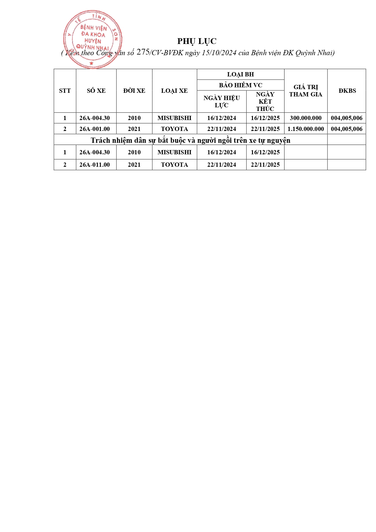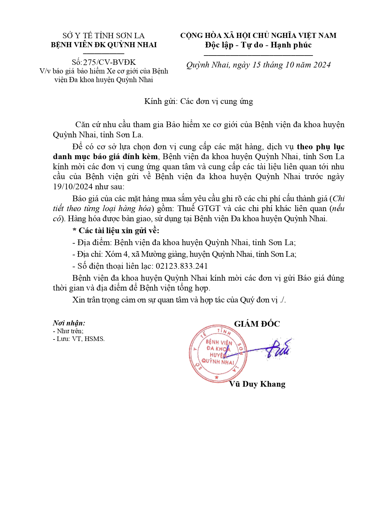 Báo giá bảo hiểm xe cơ giới của bênh viện đa khoa huyên Quỳnh Nhai