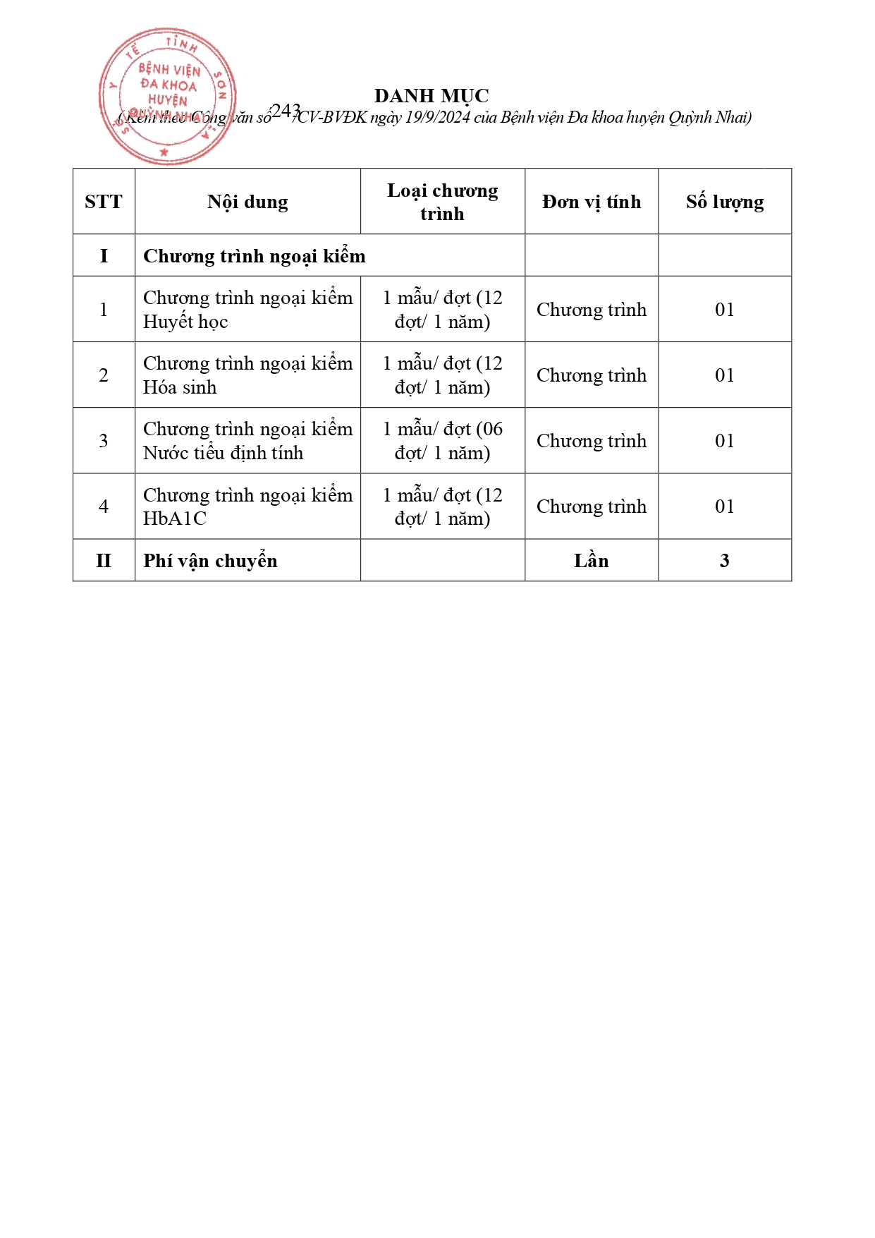 Báo giá chương trình ngoại kiểm năm 2025