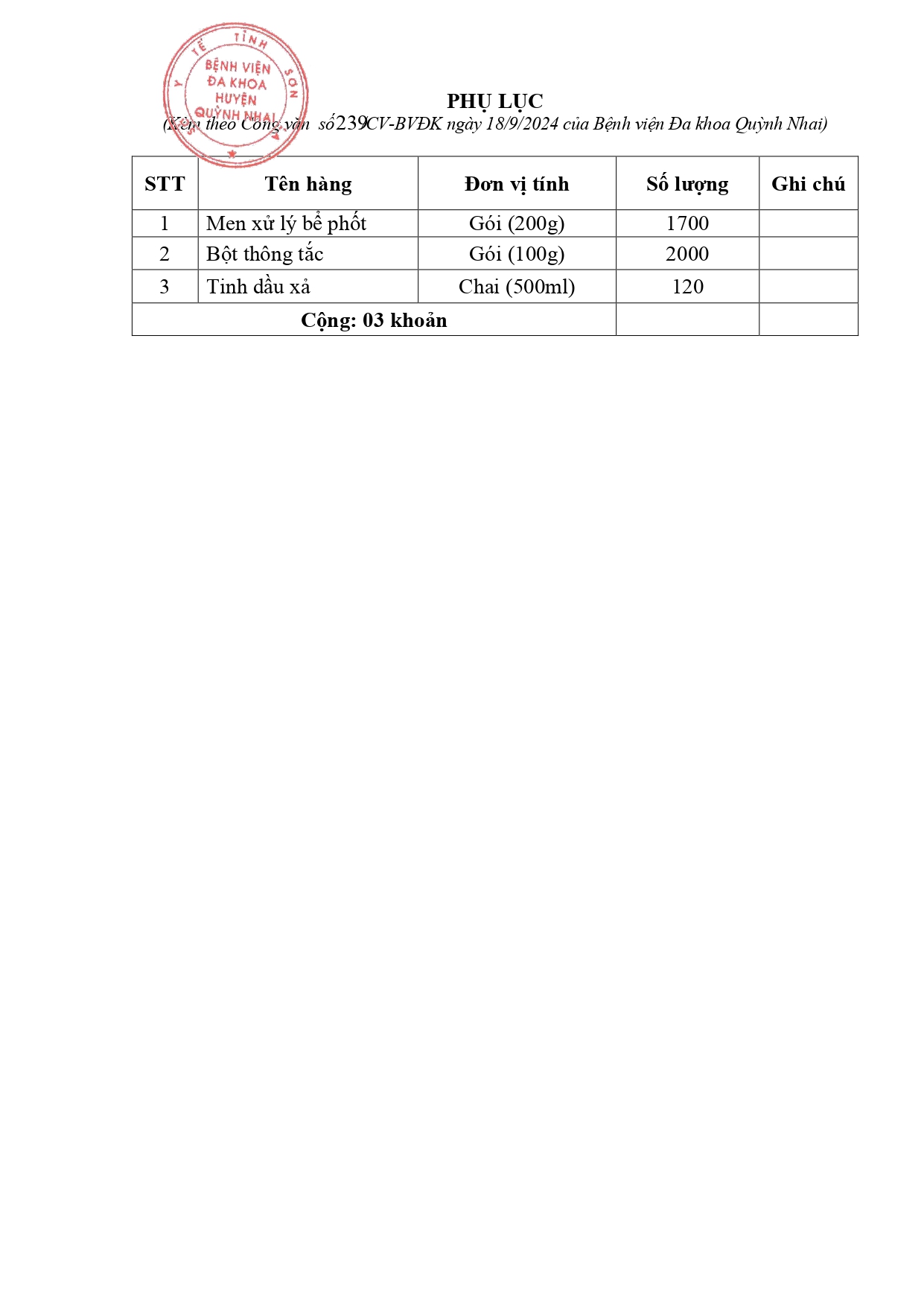 Báo giá hàng hóa năm 2025 của bệnh viên đa khoa quỳnh Nhai