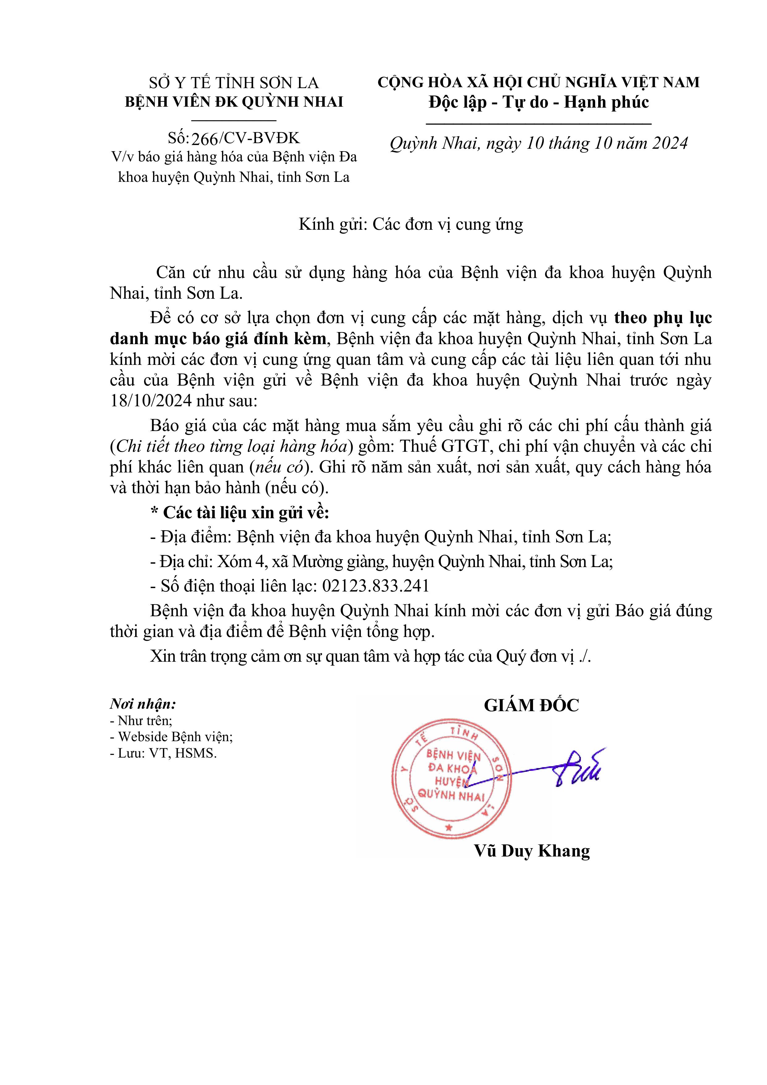 Báo giá hang hóa của bệnh viên đa khoa huyện Quỳnh Nhai