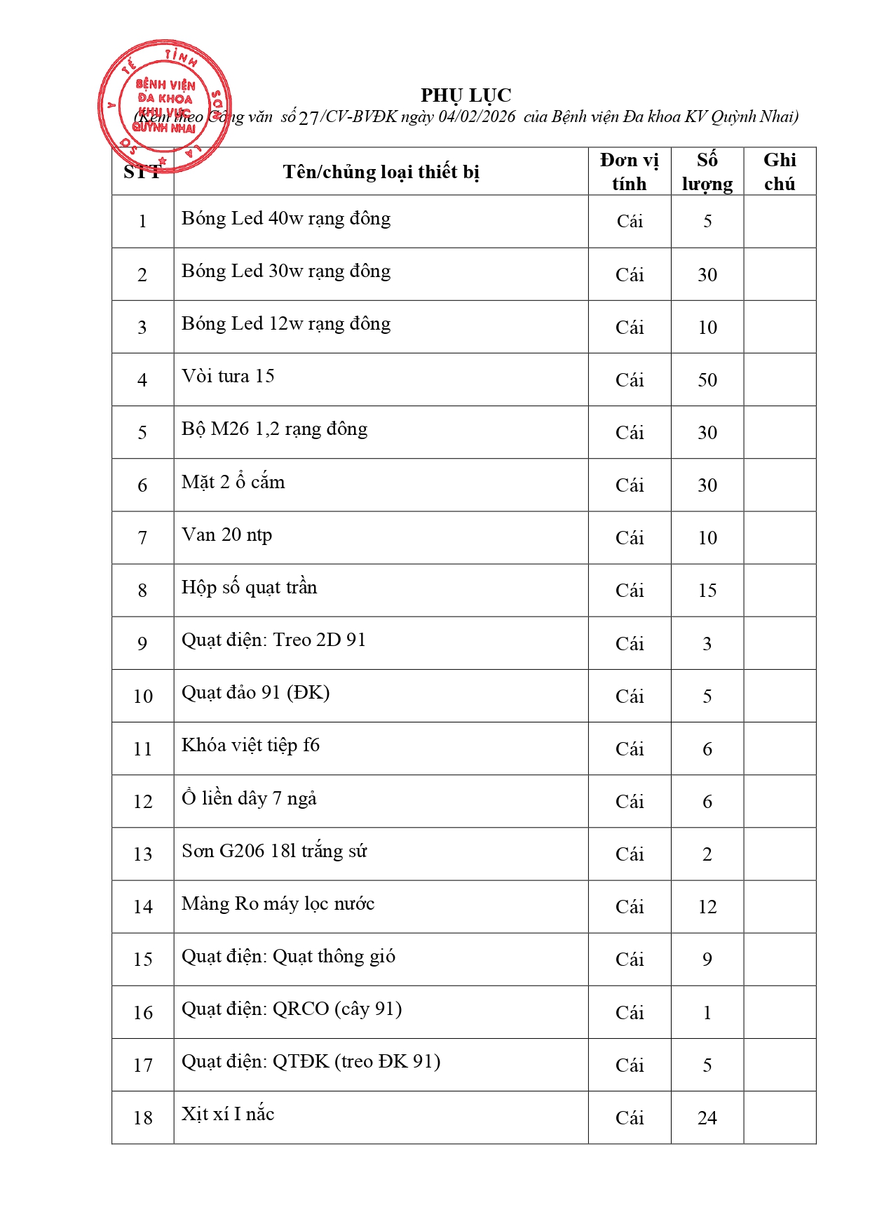 Báo giá hàng hóa của Bệnh viện Đa khoa khu vực Quỳnh Nhai