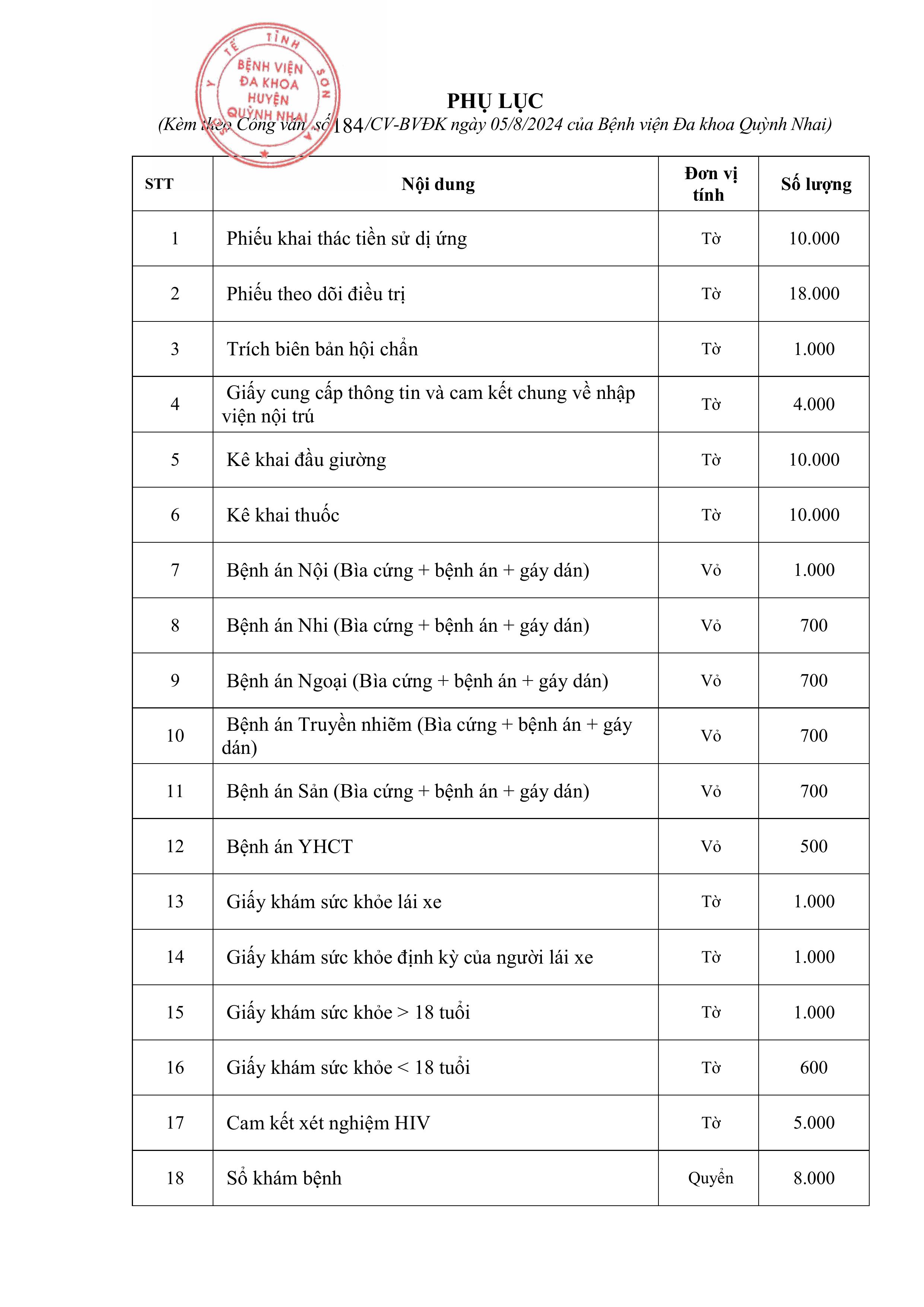 Báo giá in ấn biểu mẫu của bệnh viên đa khoa huyện Quỳnh Nhai tỉnh sơn La