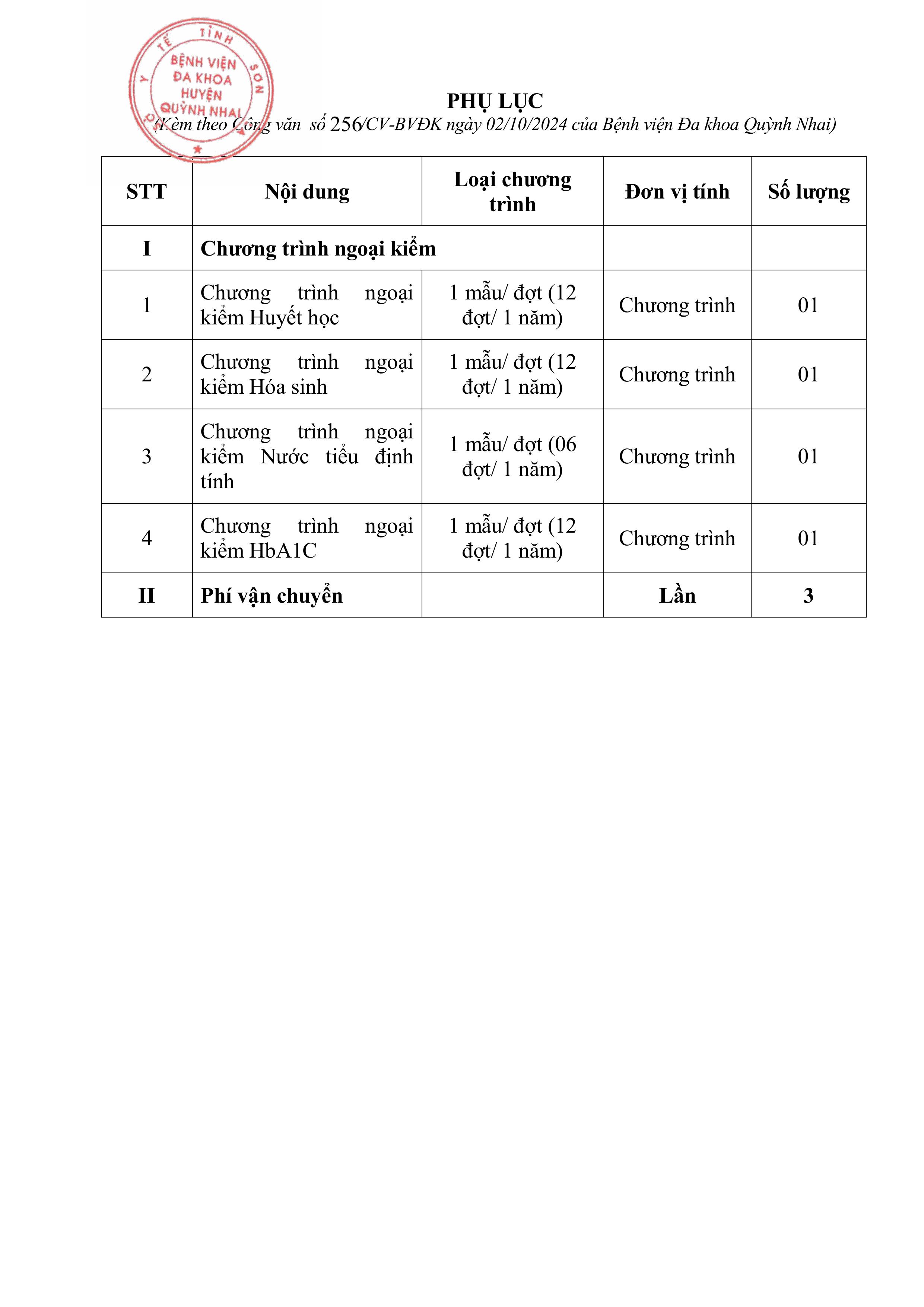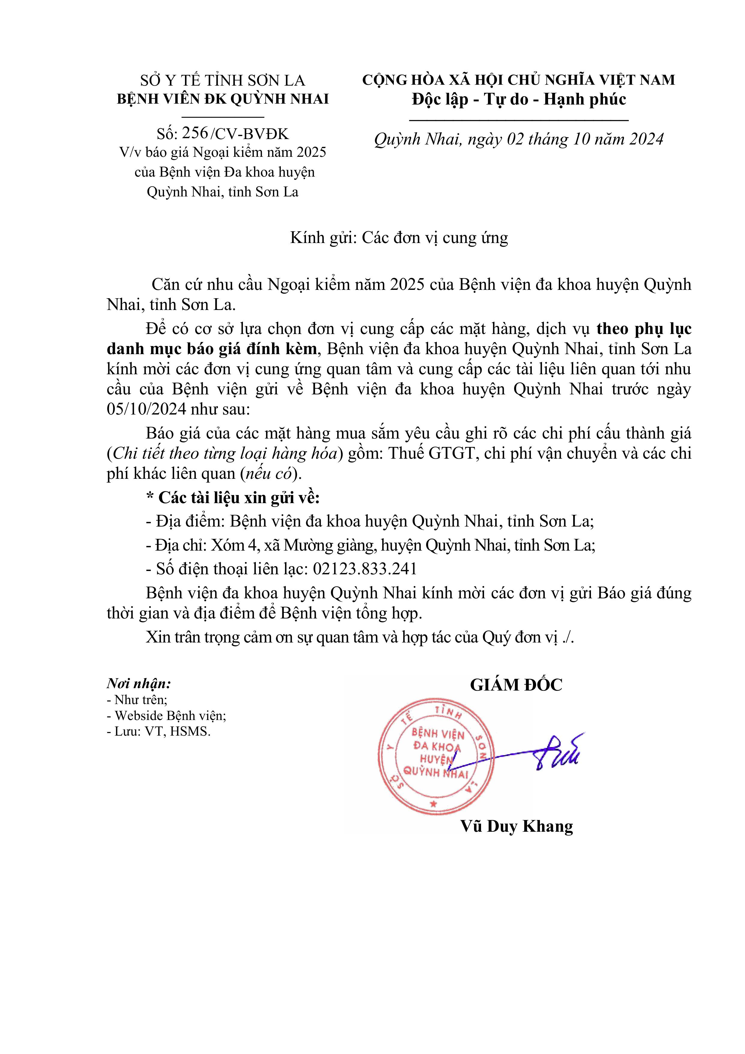Báo giá ngoại kiểm năm 2025 của bênh viện đa khoa huyện quỳnh Nhai