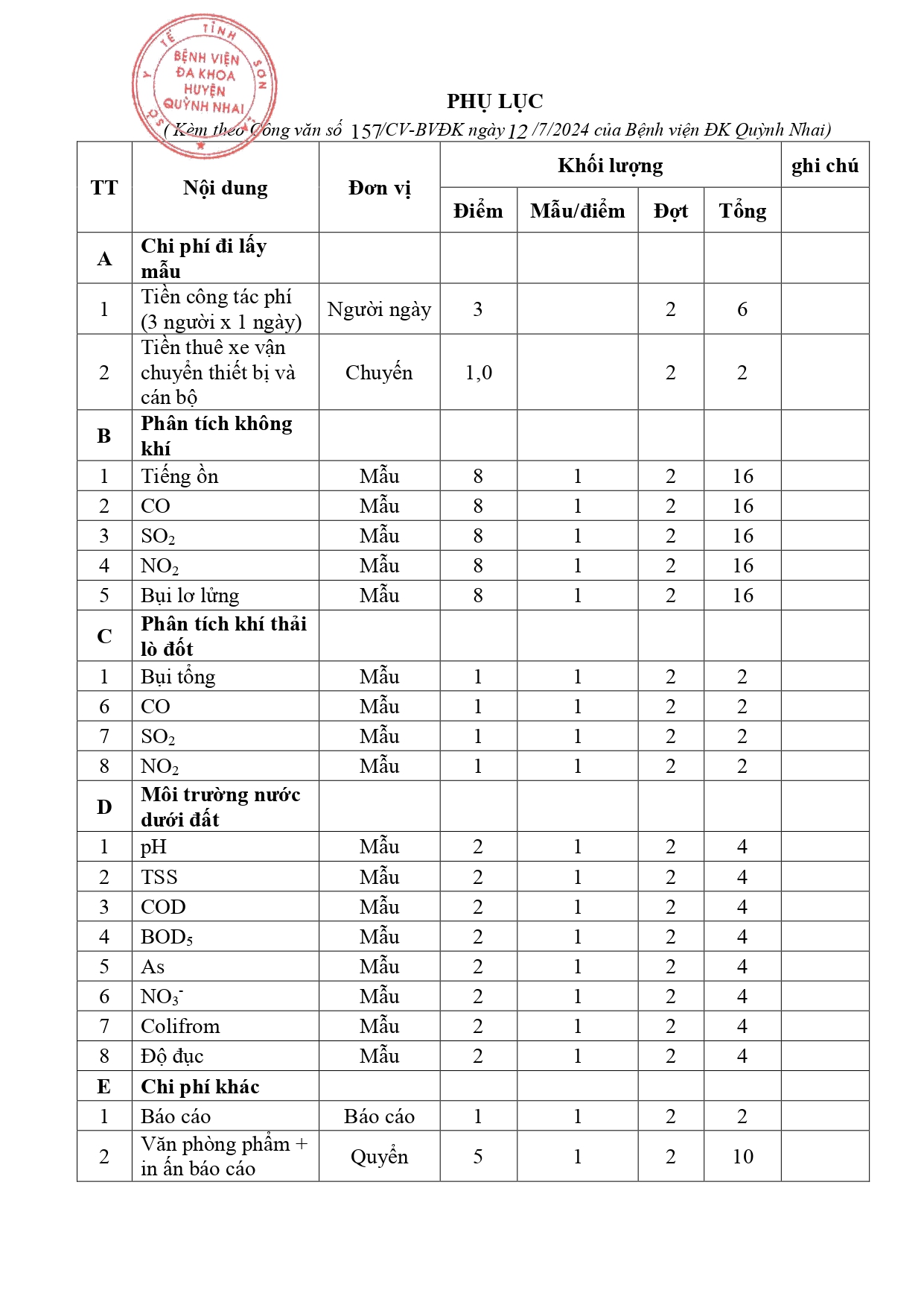 Báo giá quan trắc hất lượng mô trường bệnh iện đa khoa huyện quỳnh Nhai