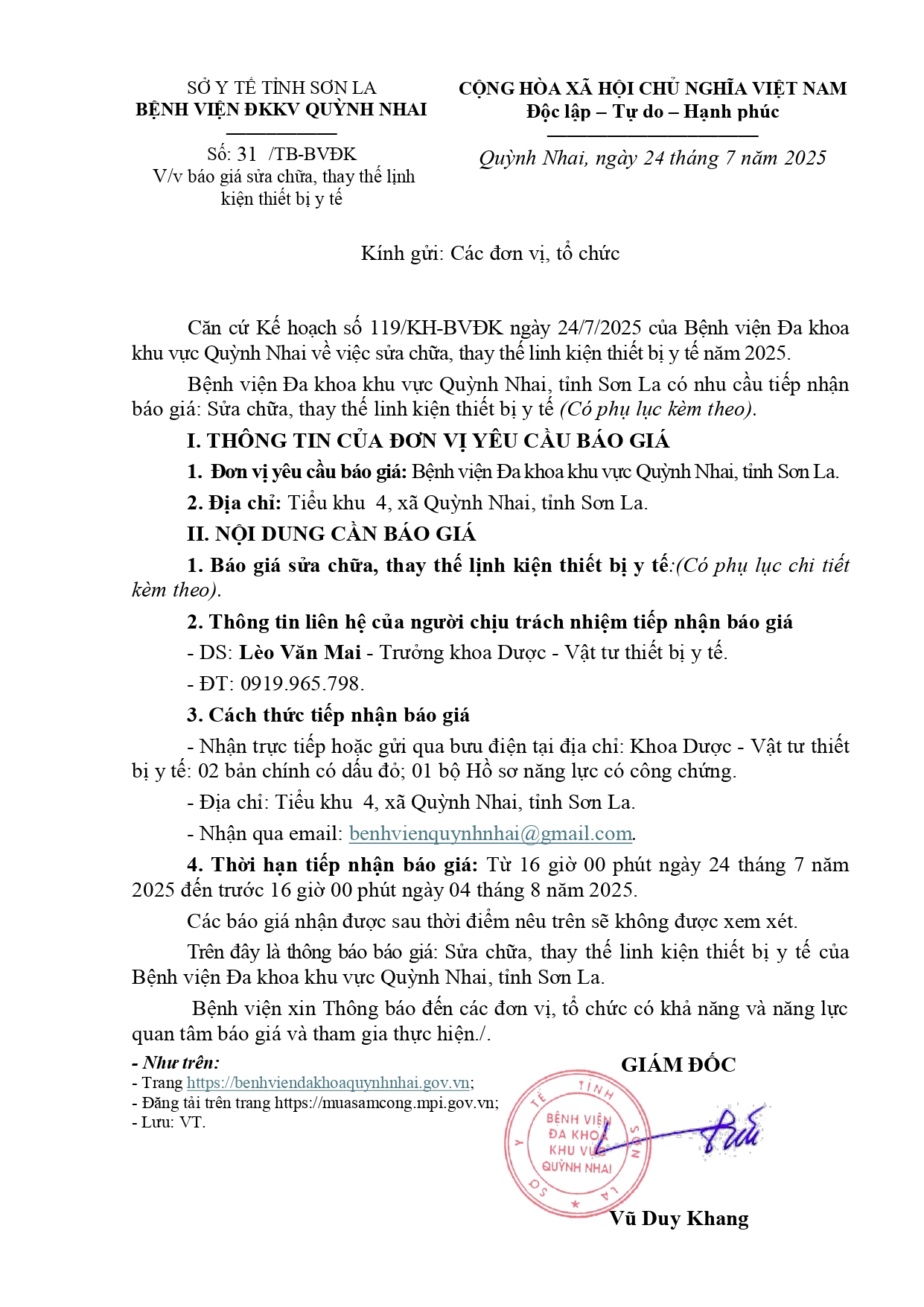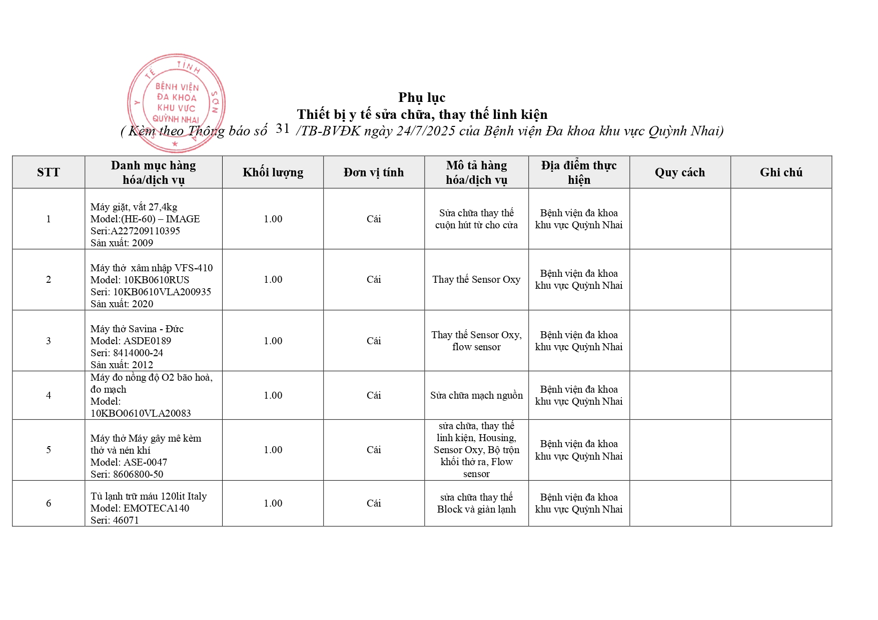 Báo giá sửa chữa thay thế linh kiên thiết bị y tế