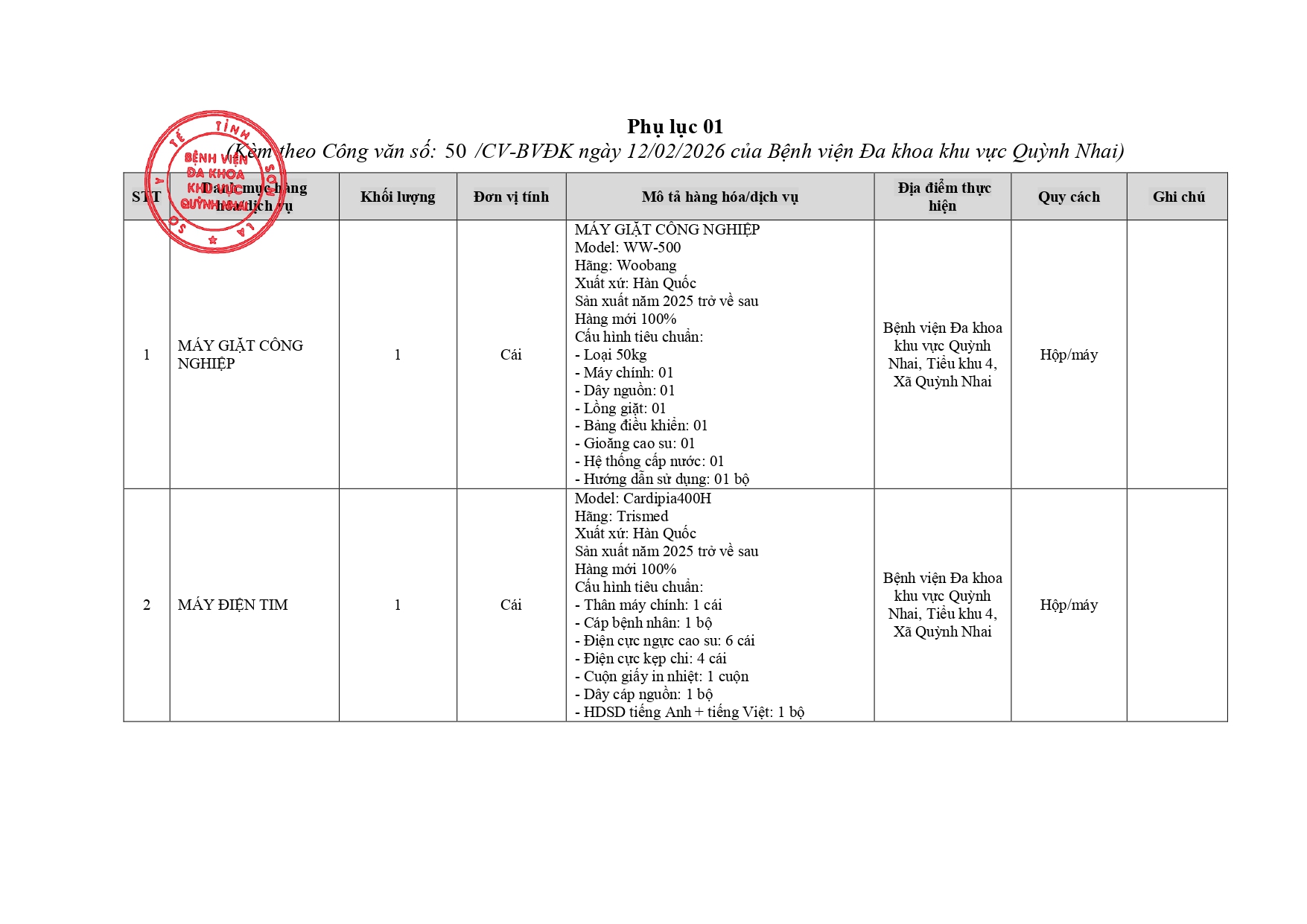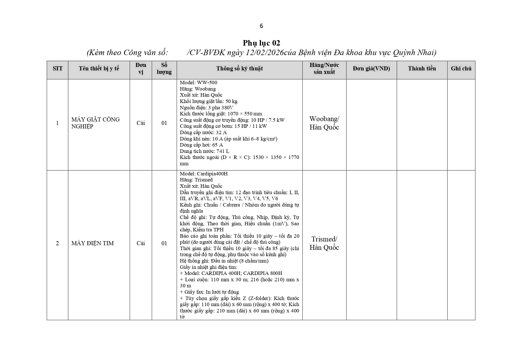 Báo giá hàng hóa của Bệnh viện Đa khoa khu vực Quỳnh Nhai( phủ phin)