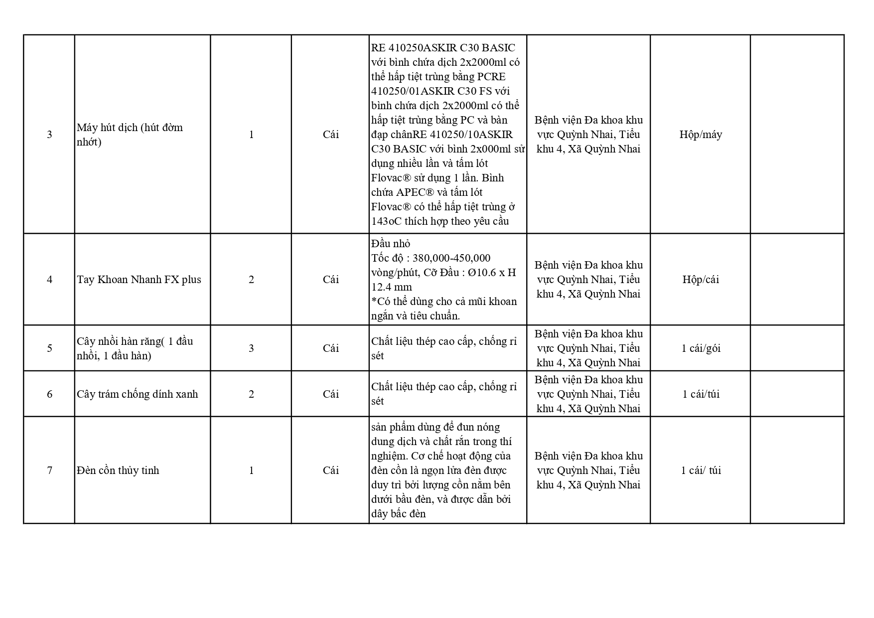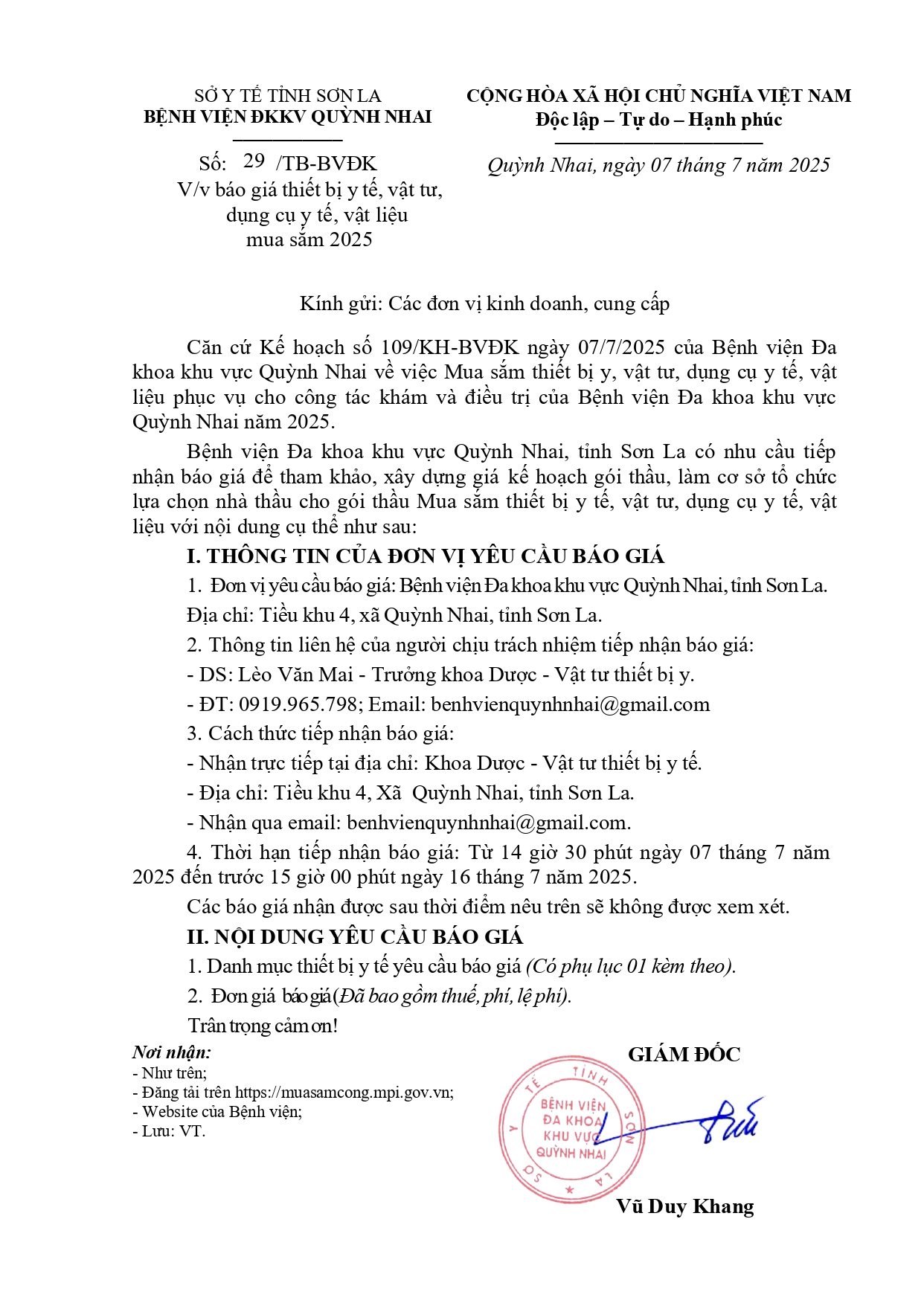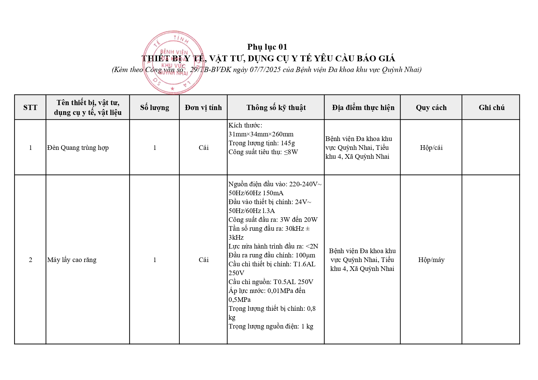Báo giá thiết bị y tế, vật tư, dụng cụ y tế mua sắm 2025