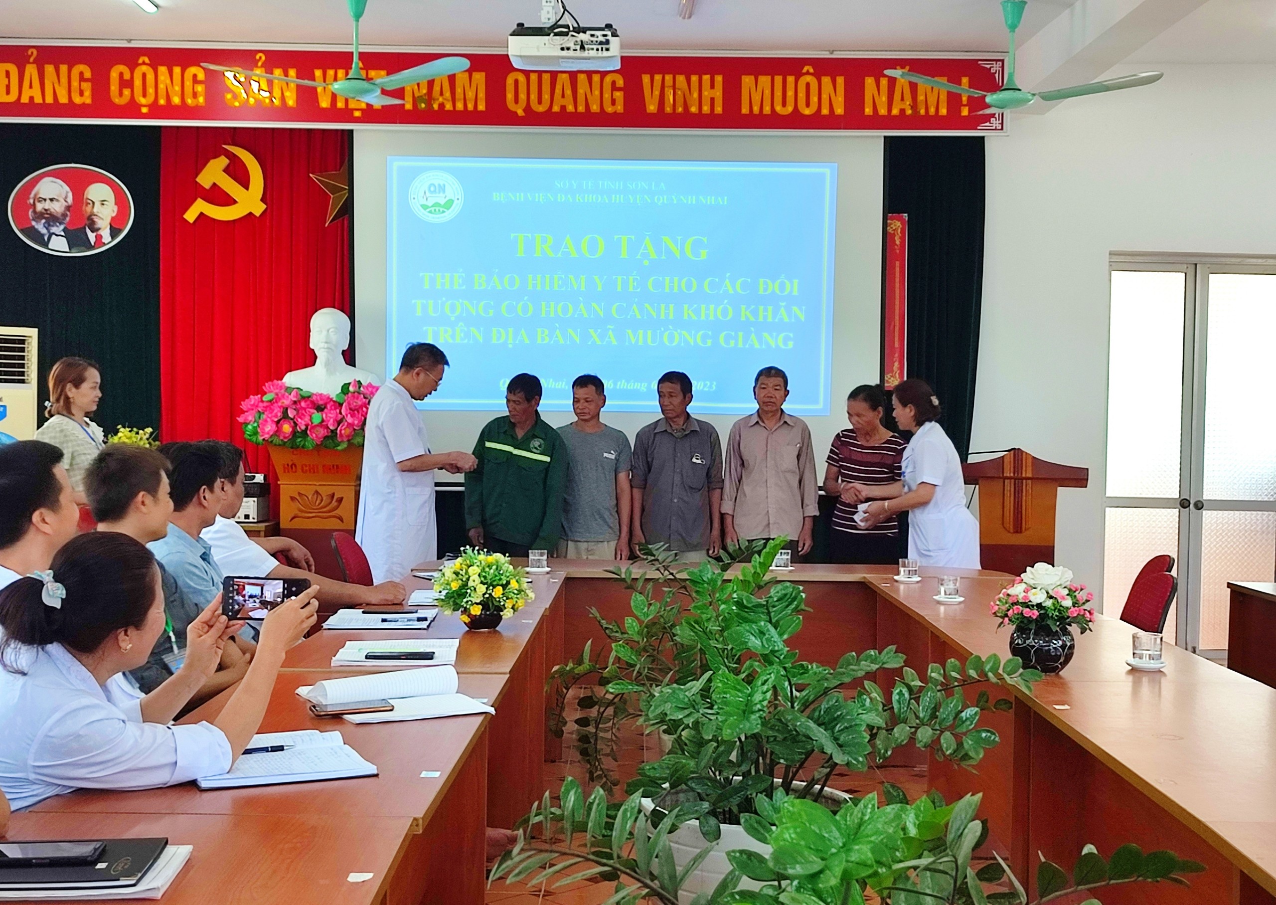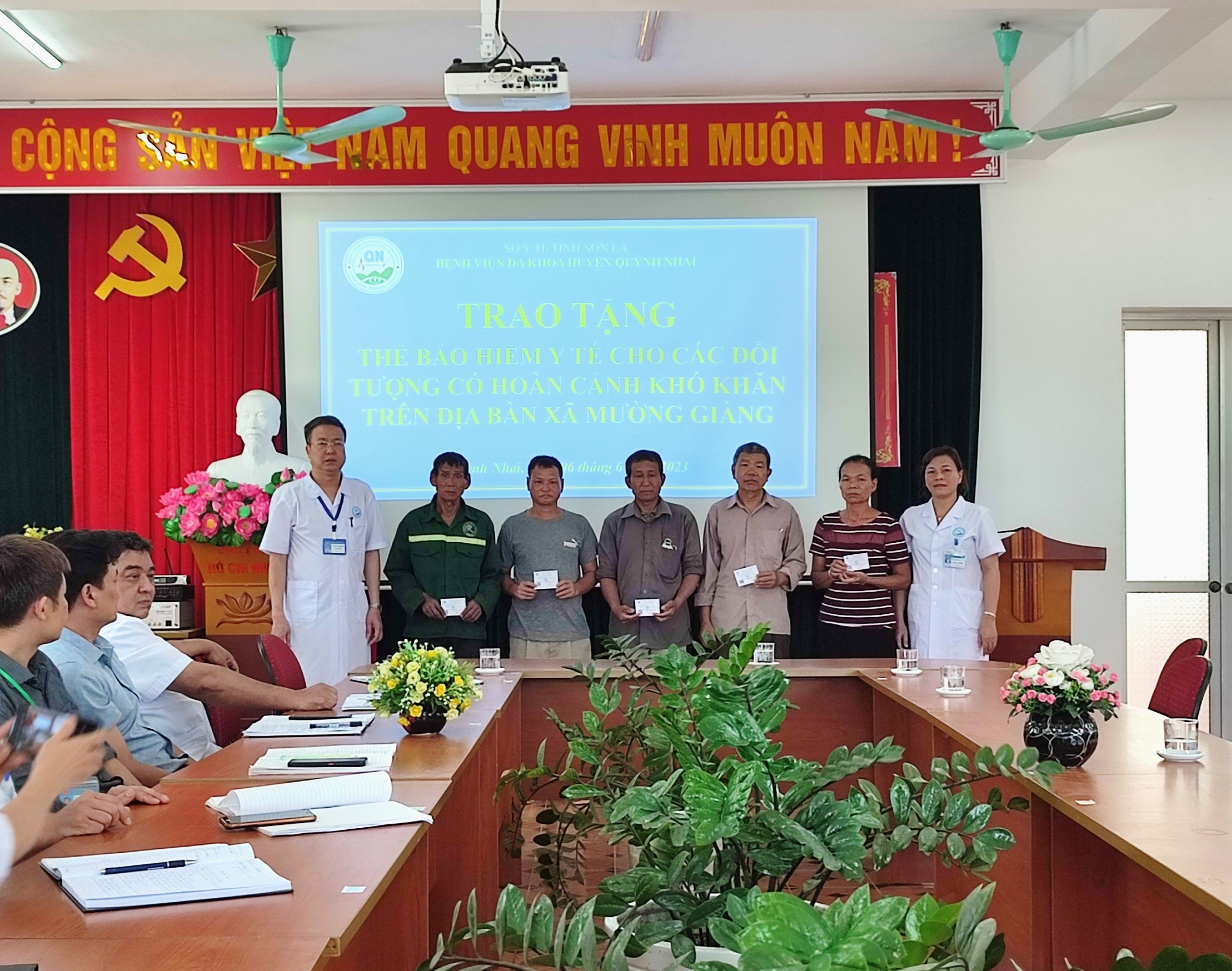 Chiều ngày 06/06/2023 tại Hội trường Bệnh viện Đa khoa huyện Quỳnh Nhai, tổ chức trao tặng 15 thẻ bảo hiểm y tế cho người dân có hoàn cảnh khó khăn chưa mua được thẻ BHYT tại xã Mường giàng