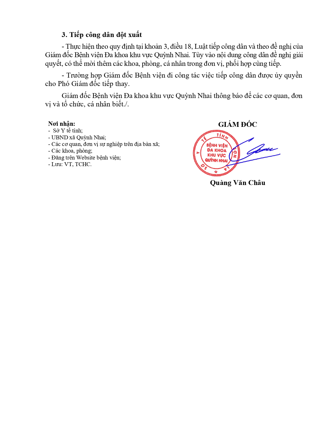 Bệnh viện Đa khoa khu vực Quỳnh Nhai, tỉnh Sơn La thông báo lịch tiếp công dân tháng 12026