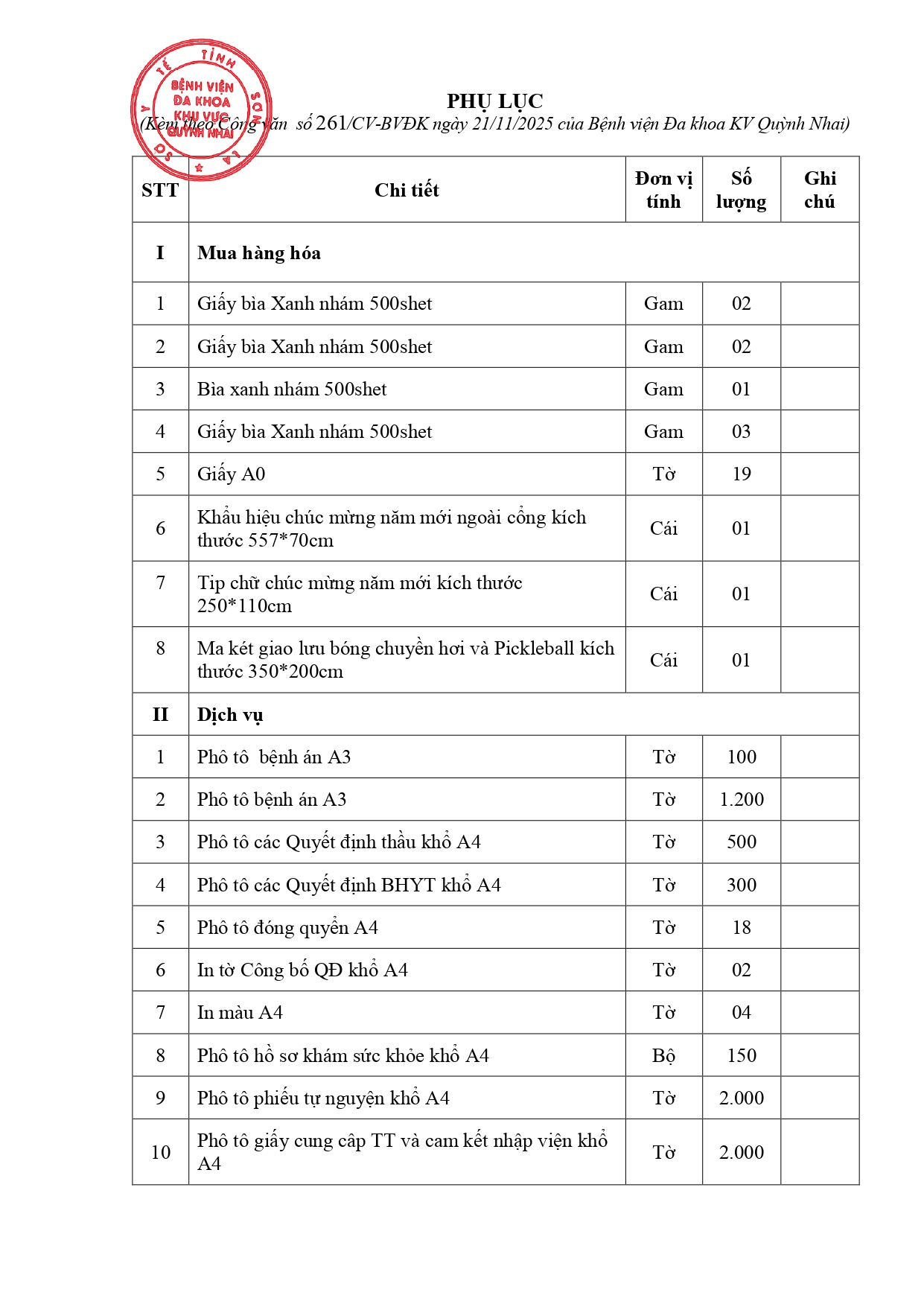 Công văn hàng hóa, dịch vụ của Bệnh viện Đa khoa khu vực Quỳnh Nhai, tỉnh Sơn La