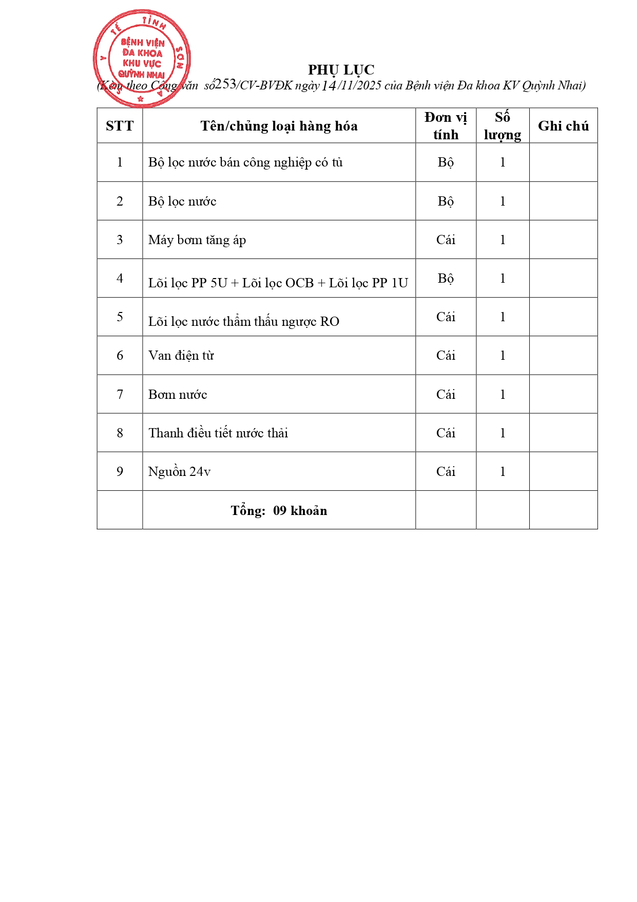 Công văn báo giá hàng hóa (Máy lọc nước)