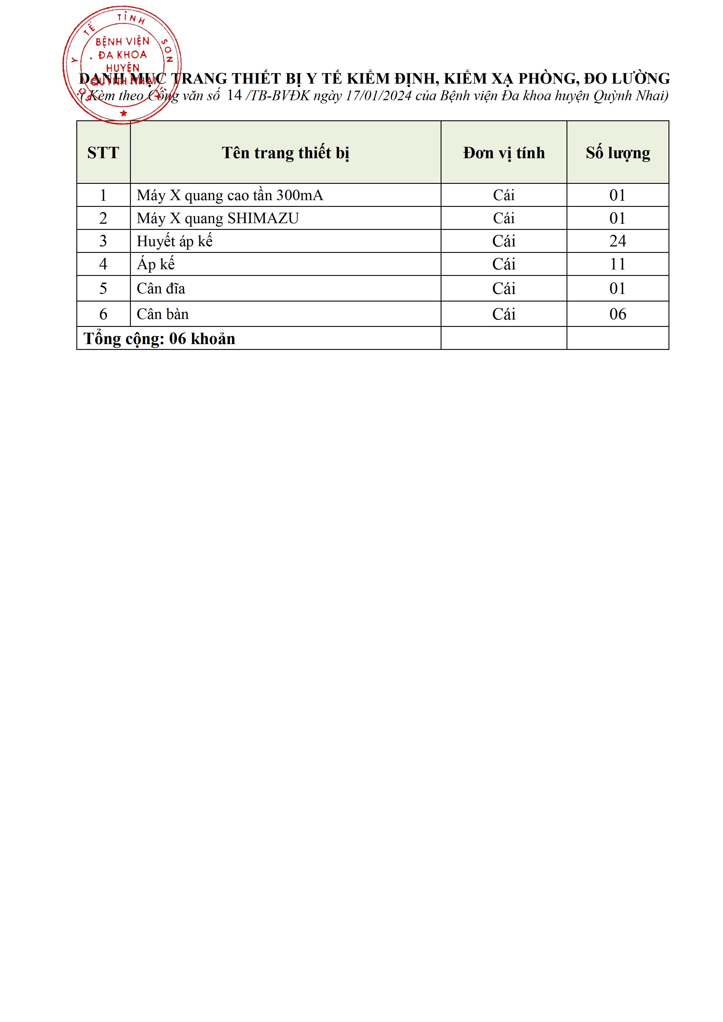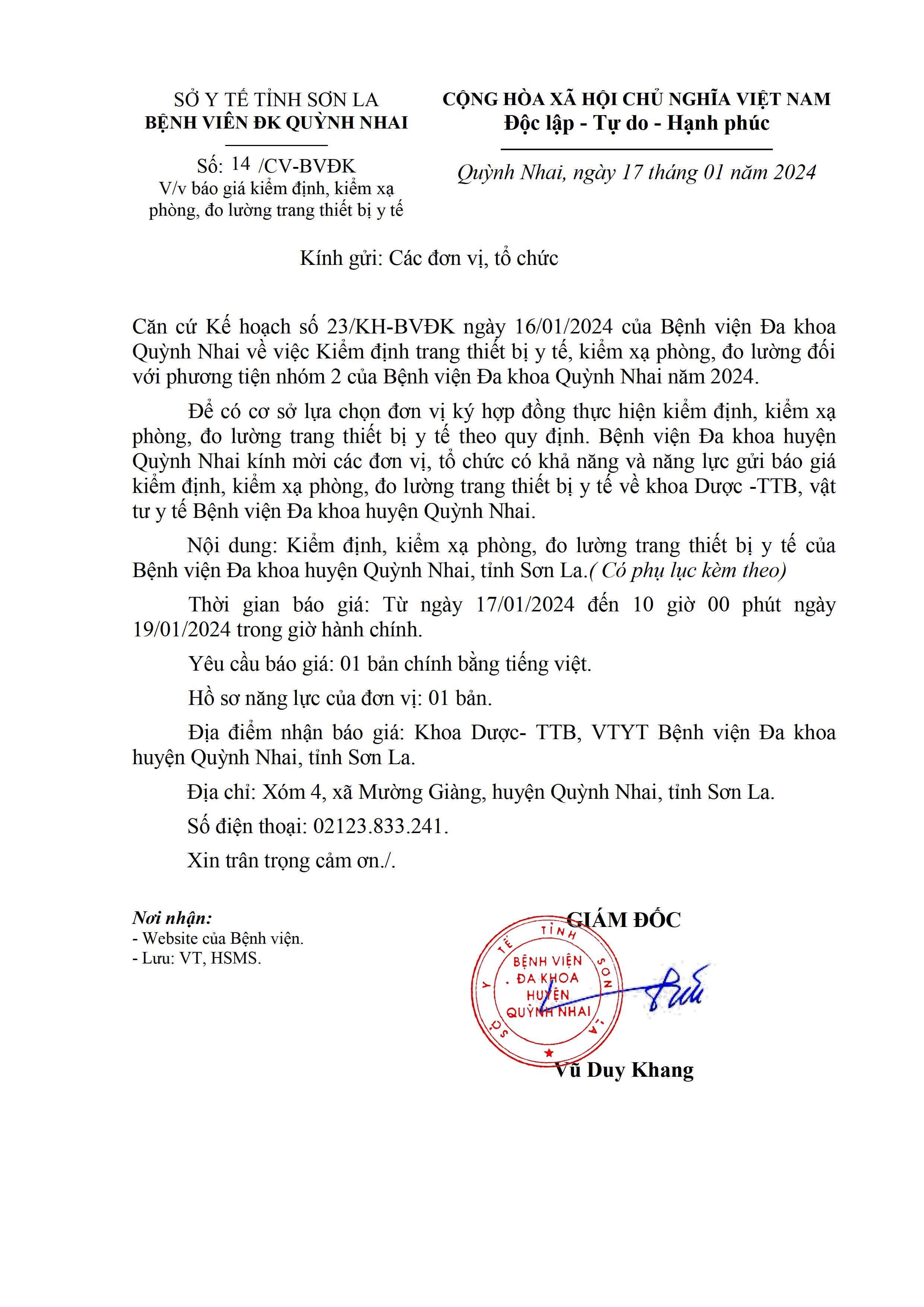Công văn mời báo giá kiểm định, kiểm xạ phòng, đo lường trang thiết bị y tế