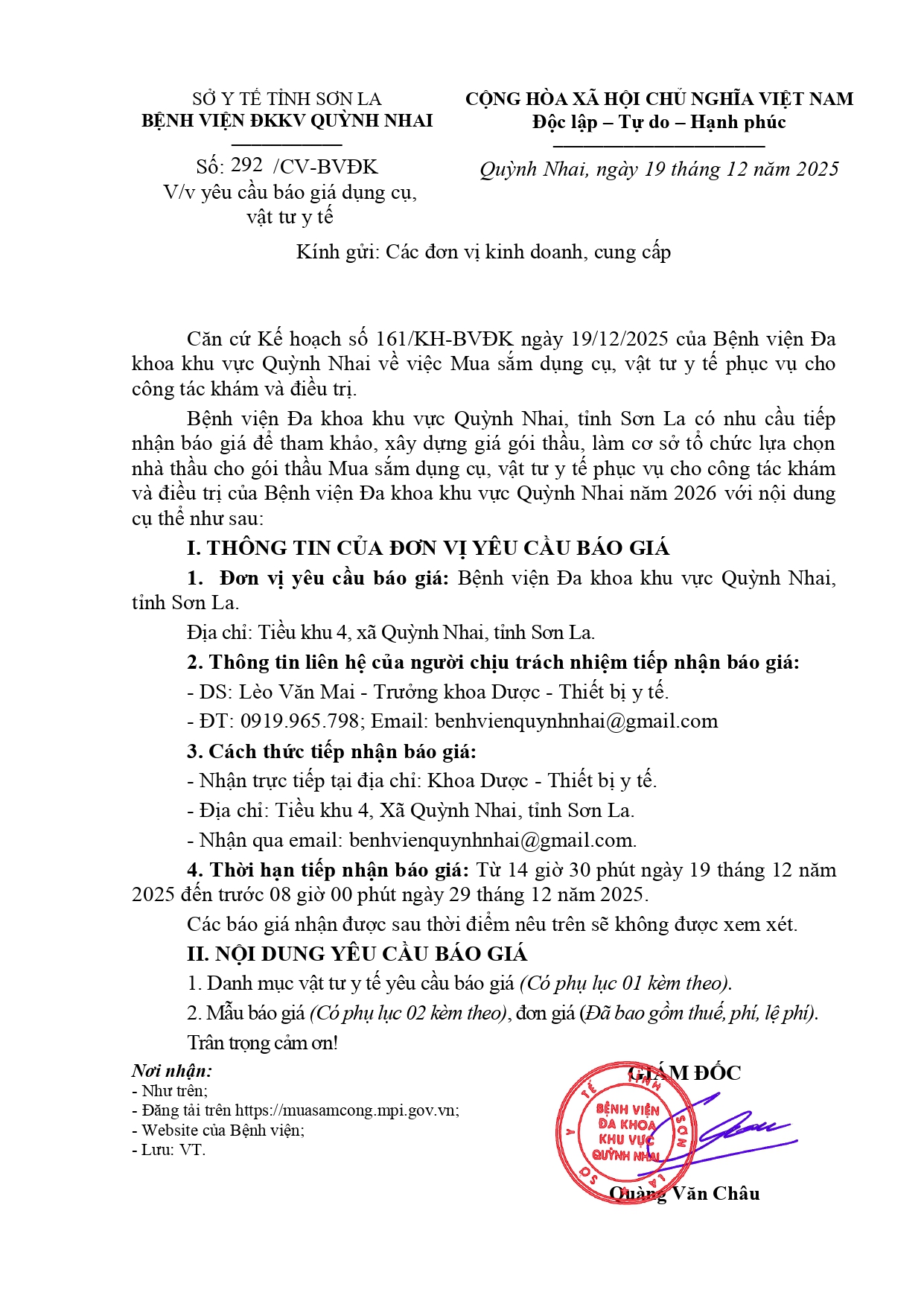 THÔNG BÁO Lịch tiếp công dân tháng 04/2026 của Bệnh viện Đa khoa khu vực Quỳnh Nhai, tỉnh Sơn La