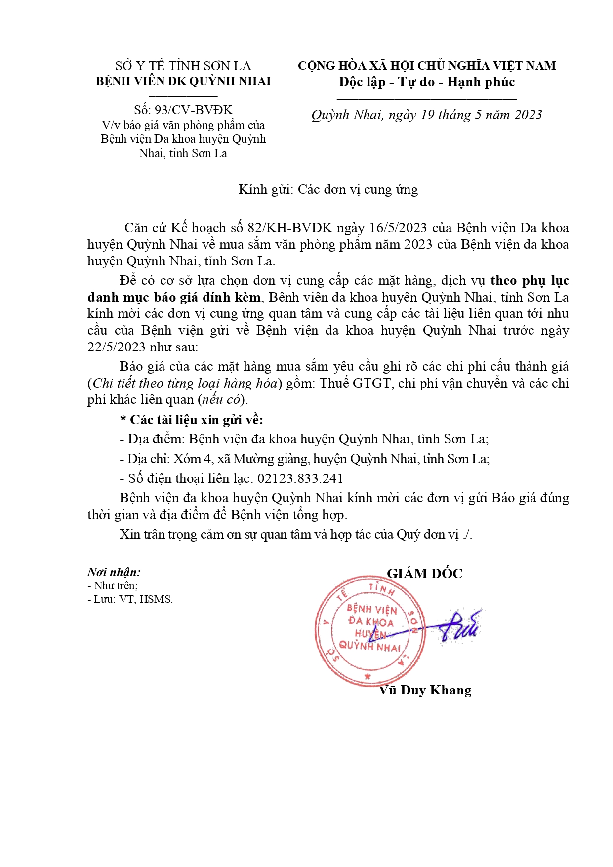 Báo giá văn phòng phẩm của Bệnh viên Đa khoa huyện Quỳnh Nhai
