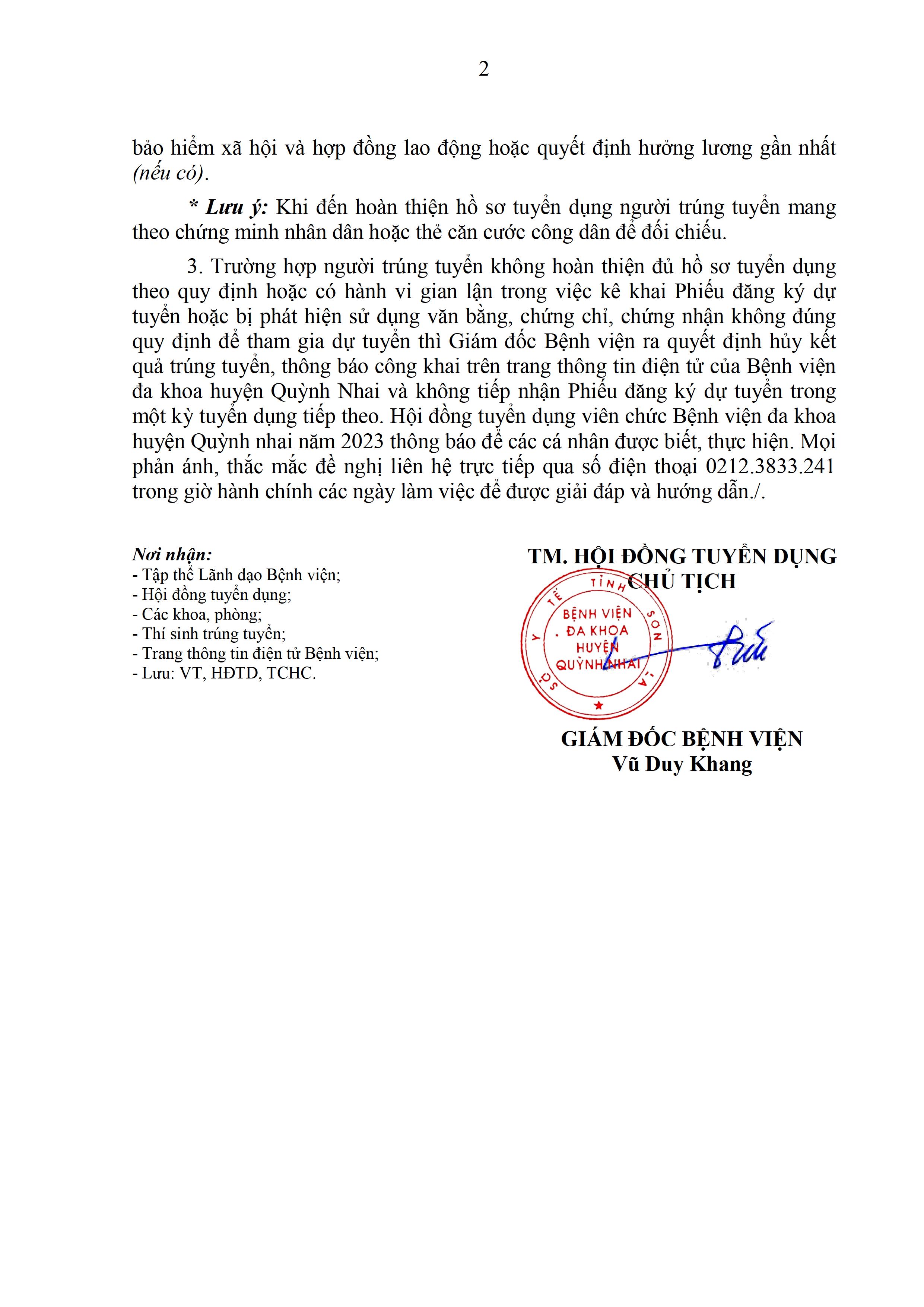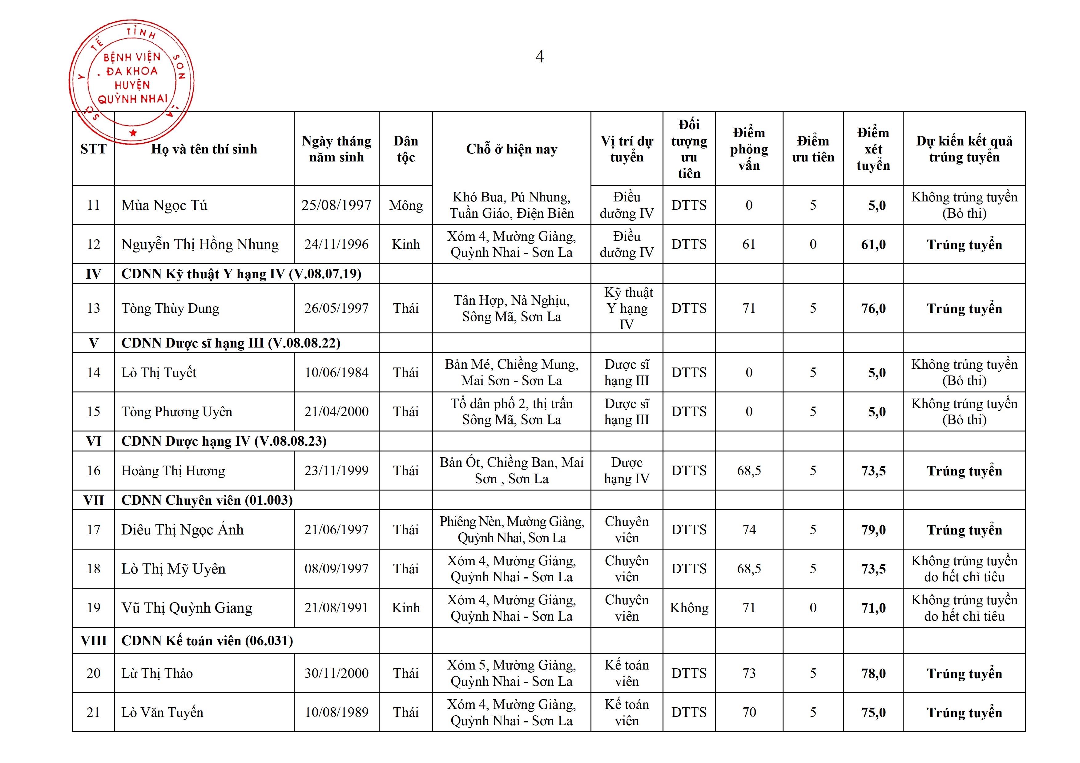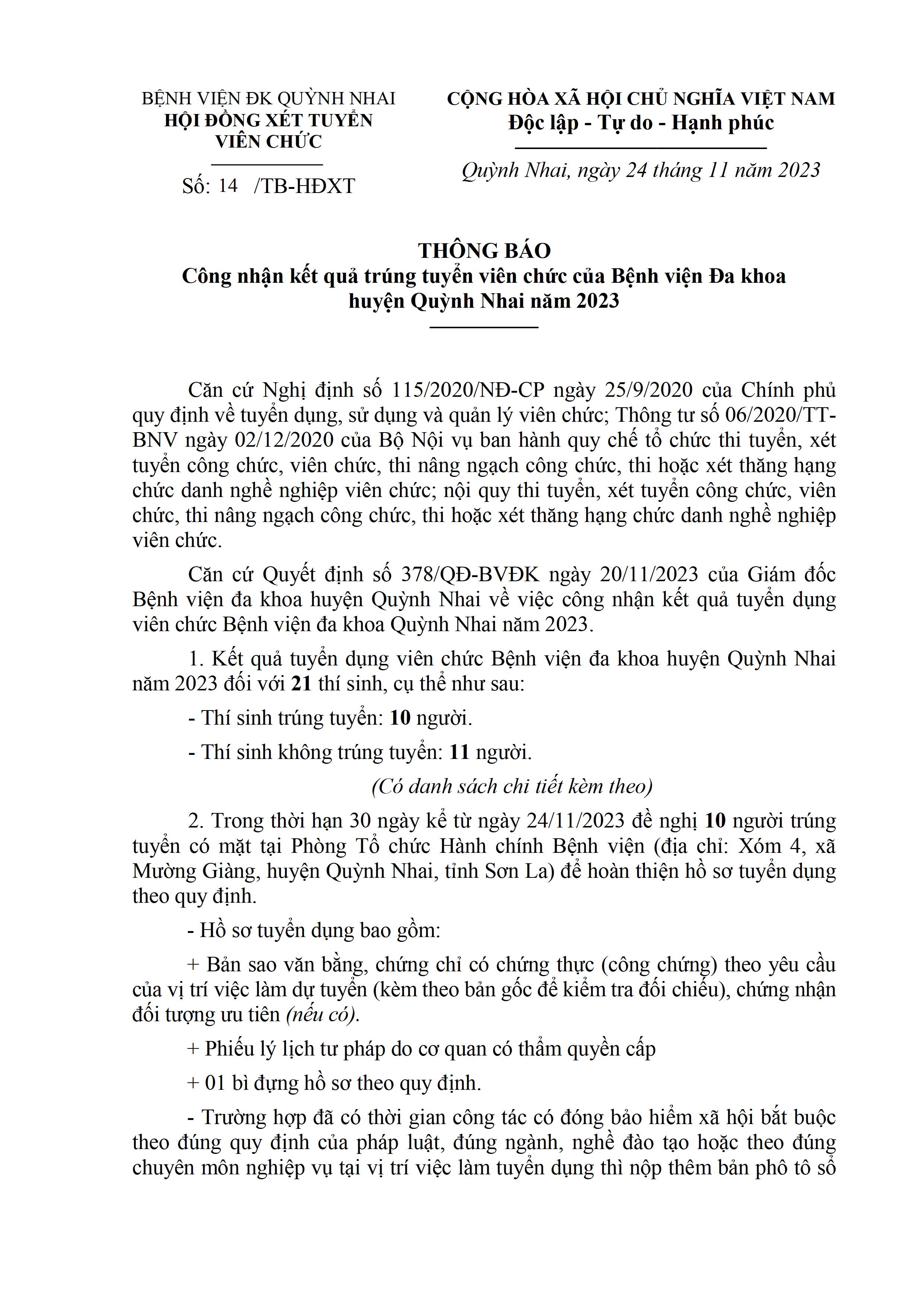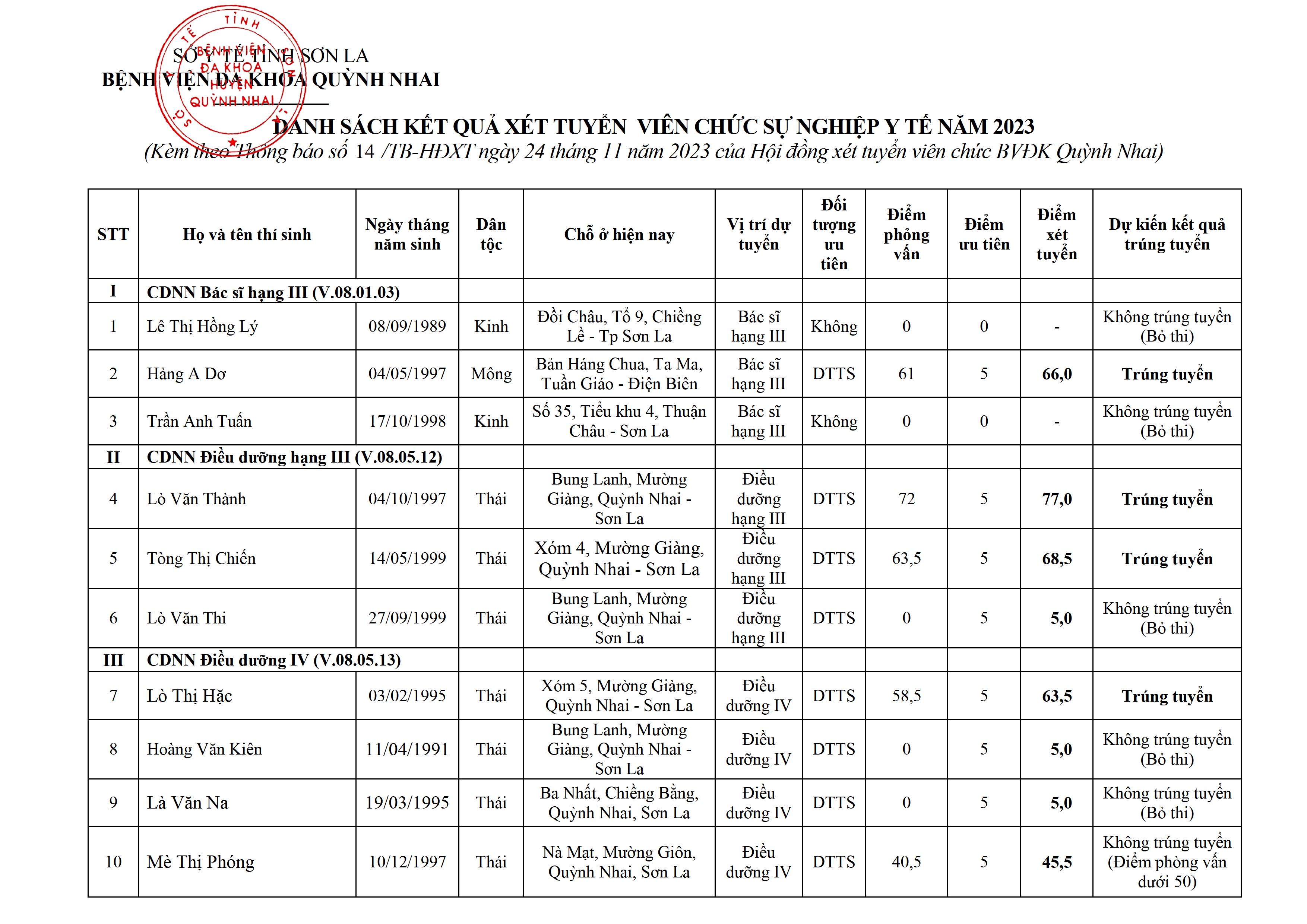 Thông báo công nhận kết quả trúng tuyển viên chức của Bệnh viện Đa khoa huyện Quỳnh Nhai năm 2023