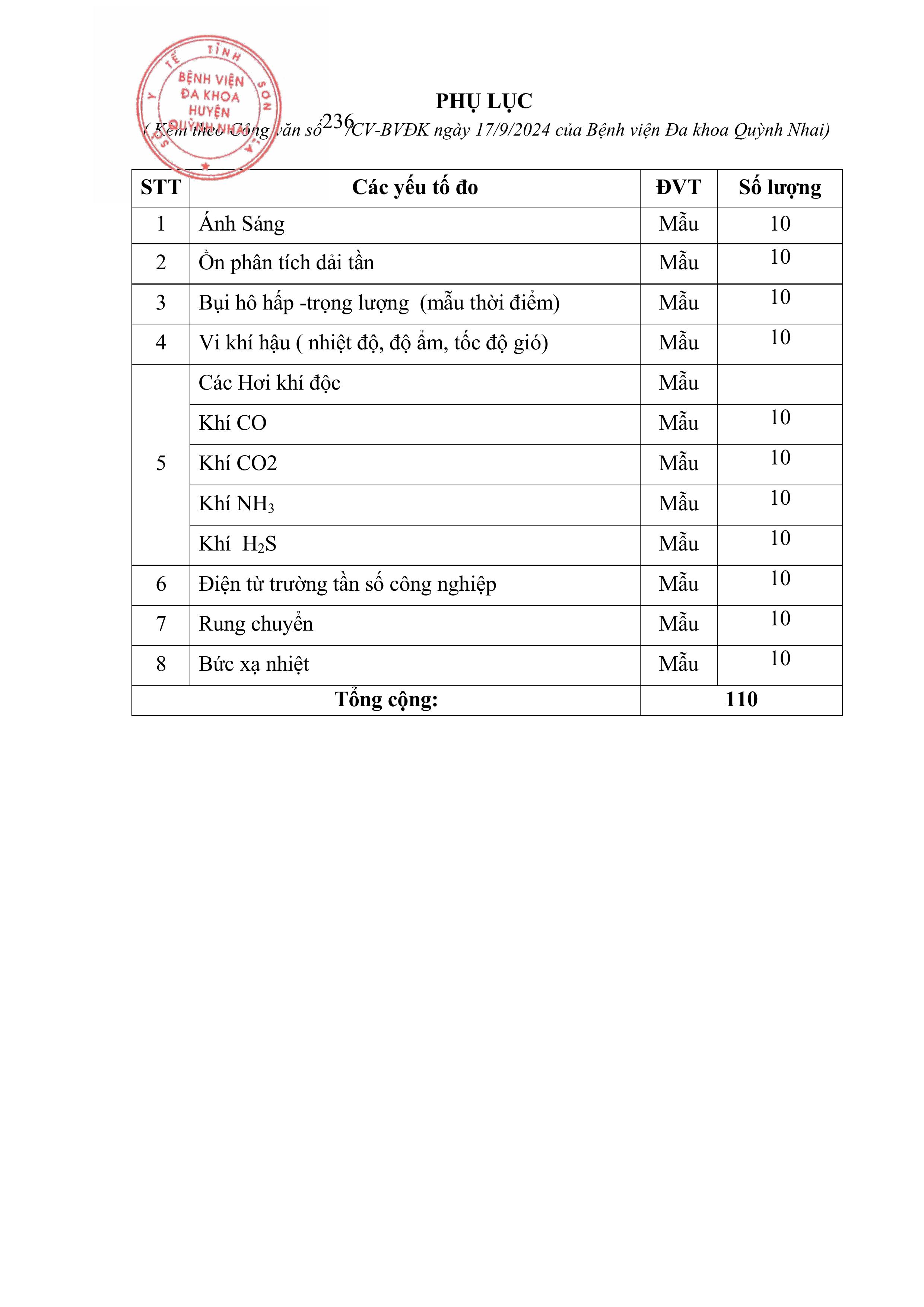 Thông báo giá quan trắc moi trường lao động bệnh viên đa khoa quỳnh nhai năm 2024