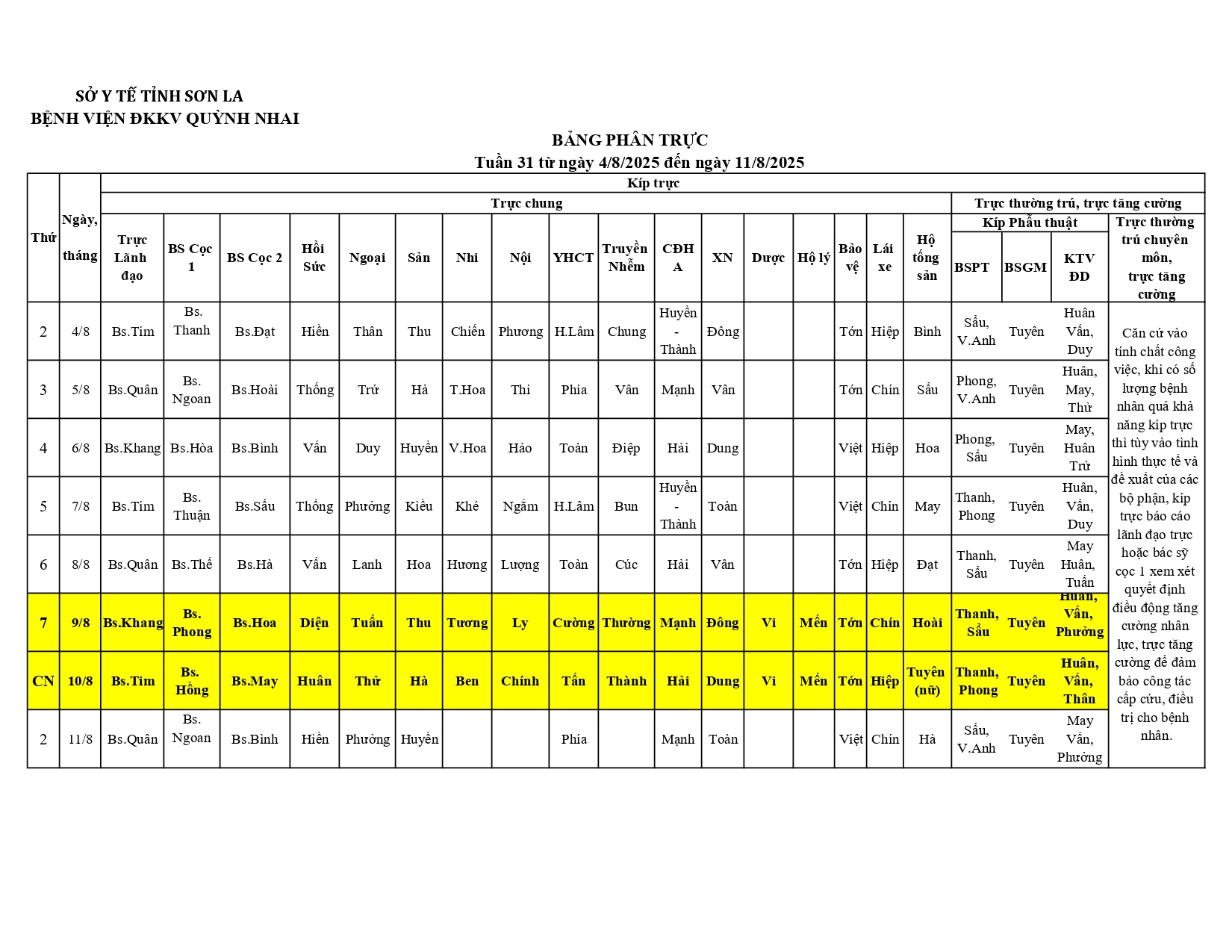 Tuần 31 từ ngày 4/8/2025 đến ngày 11/8/2025