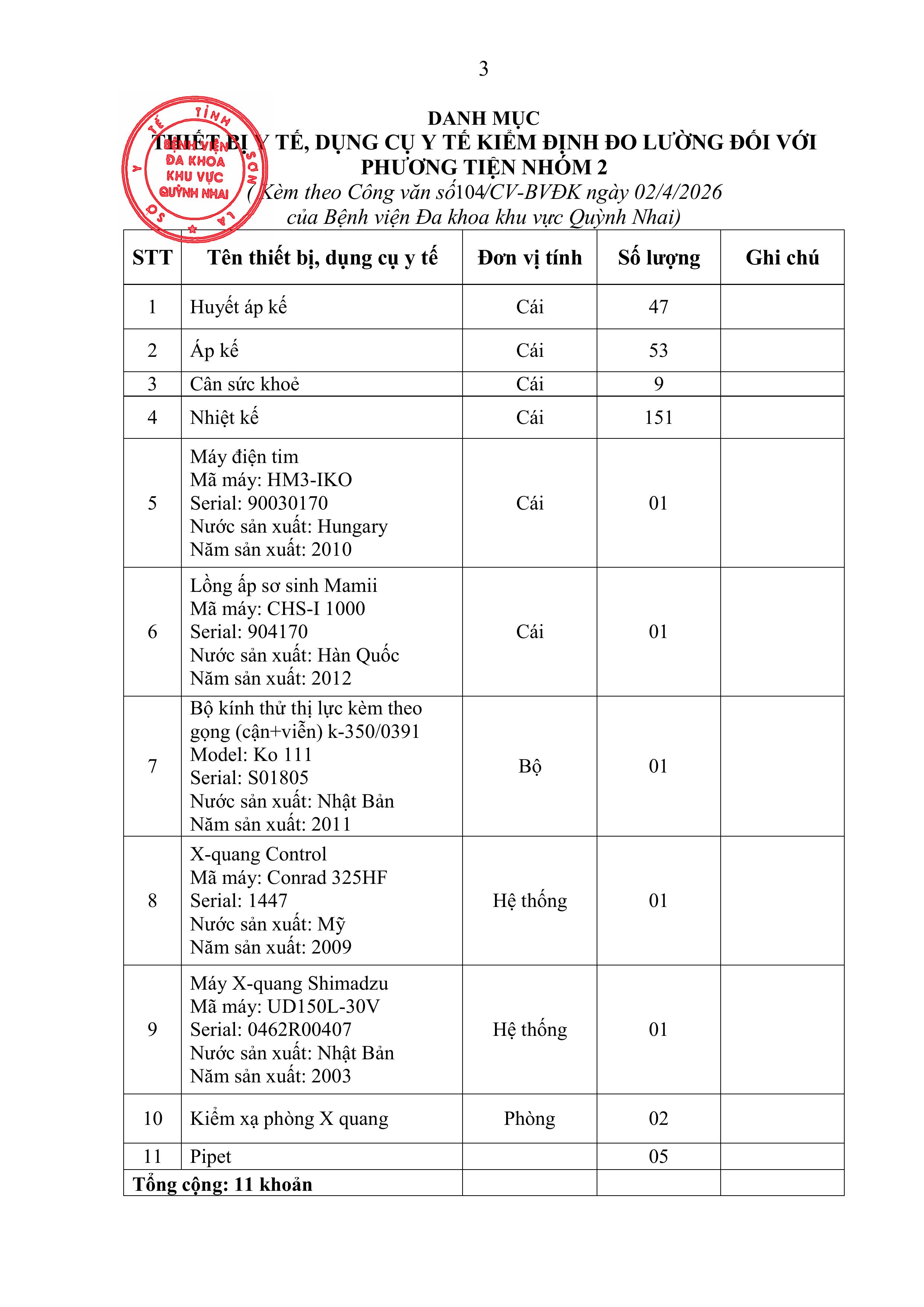 yêu cầu báo giá Kiểm định, kiểm tra an toàn tính năng kỹ thuật thiết bị y tế, kiểm xạ phòng, đo lường đối với phương tiện nhóm 2, hiệu chuẩn dụng cụ y tế